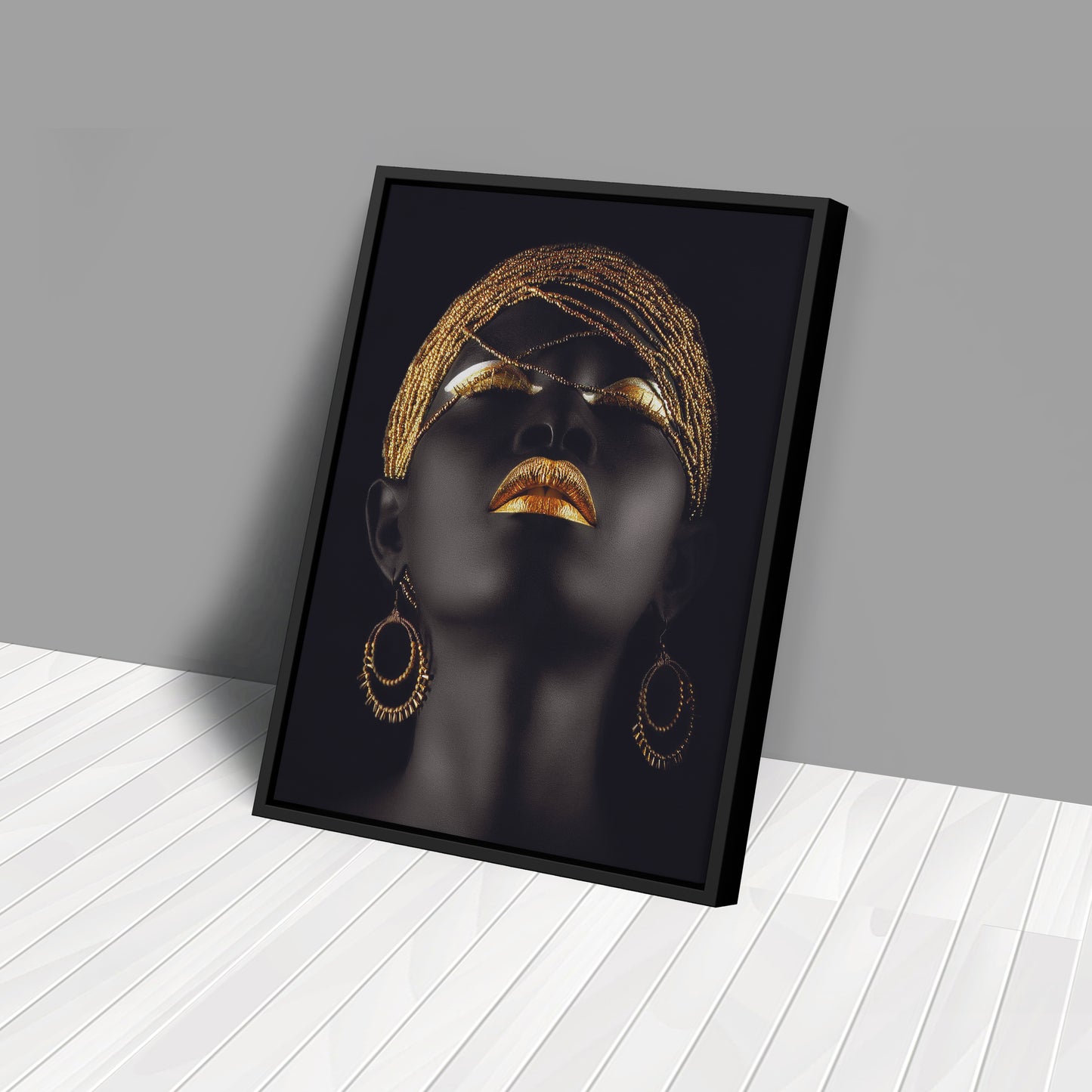 Celebrate beauty, identity, and radiance with this African Woman with Golden Hair & Lips Canvas Print. Shop now to elevate your space with bold culture and style.