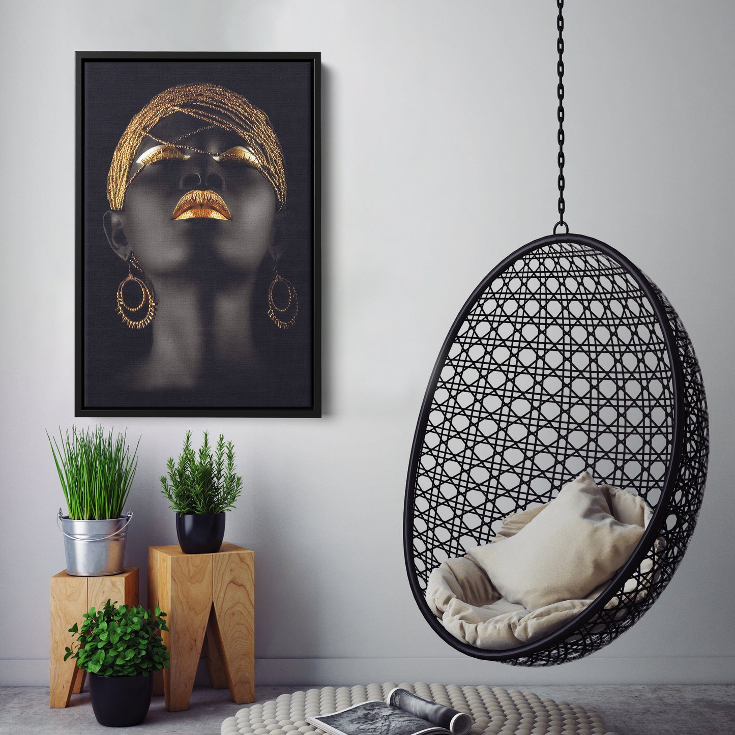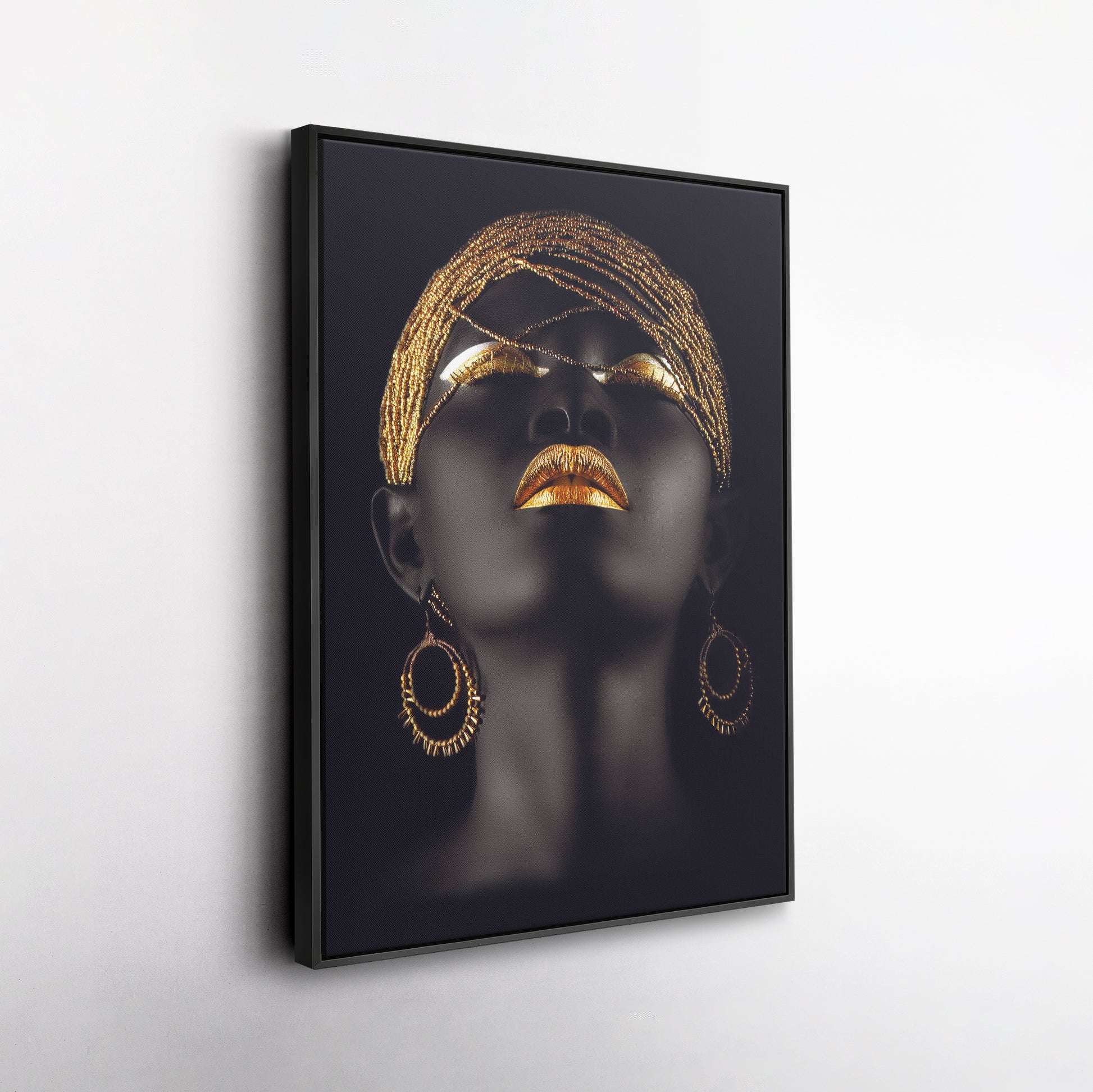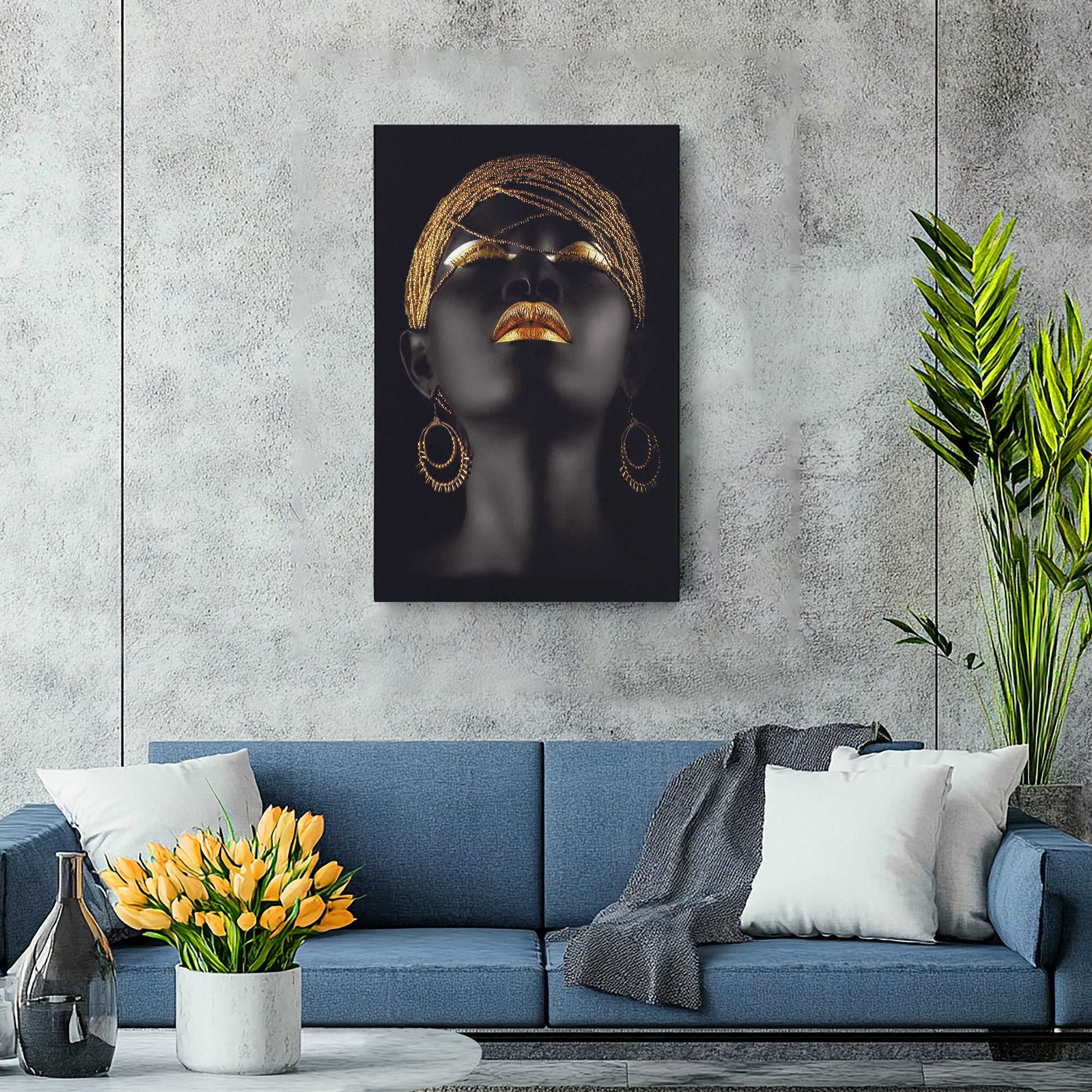 Beautiful African Woman with Golden Hair & Lips - Canvas Wall Art Decor