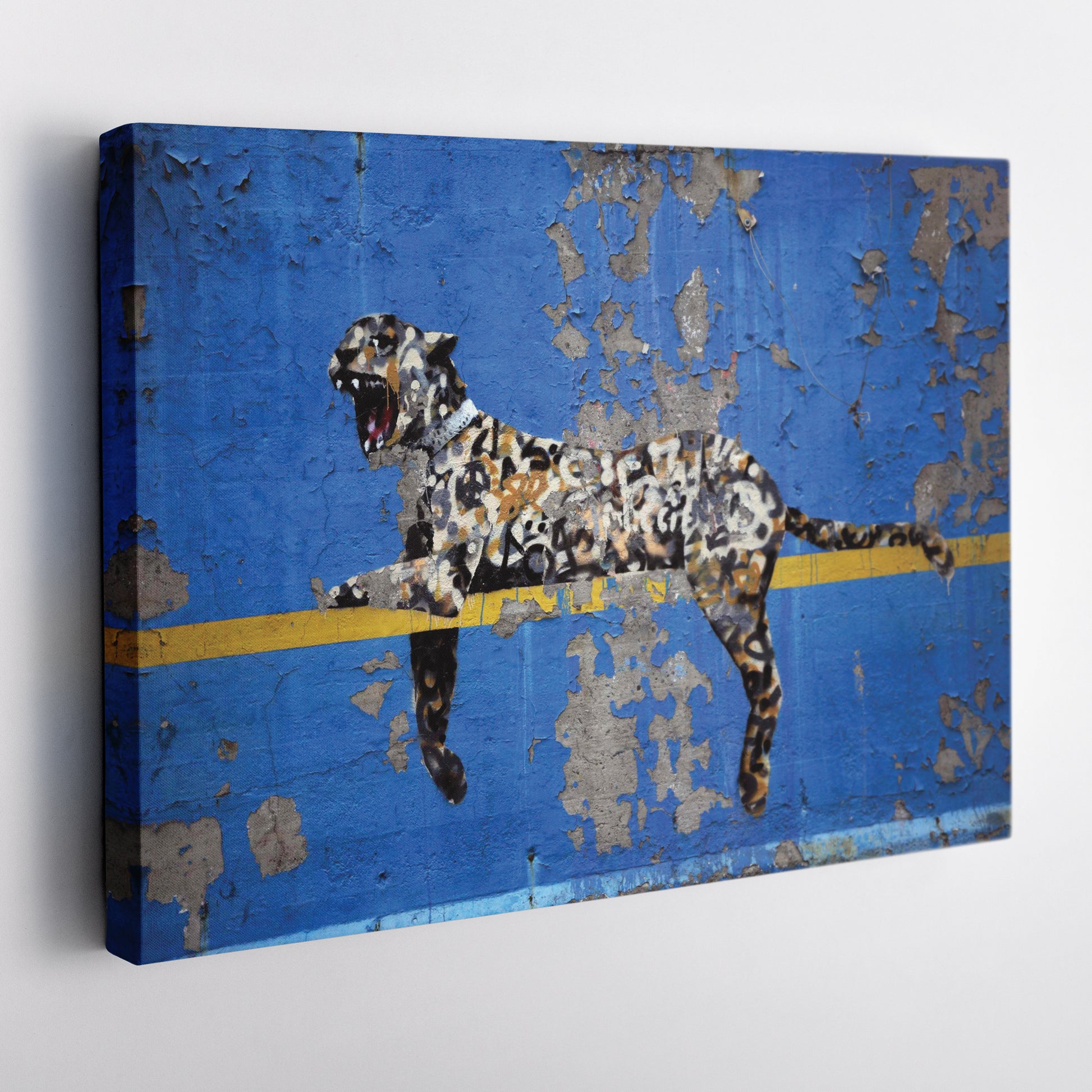 Show off your love for satirical street art and urban culture with this Banksy 'Bronx Zoo Leopard' Canvas Print. Shop now to add a touch of rebellion to your space!
