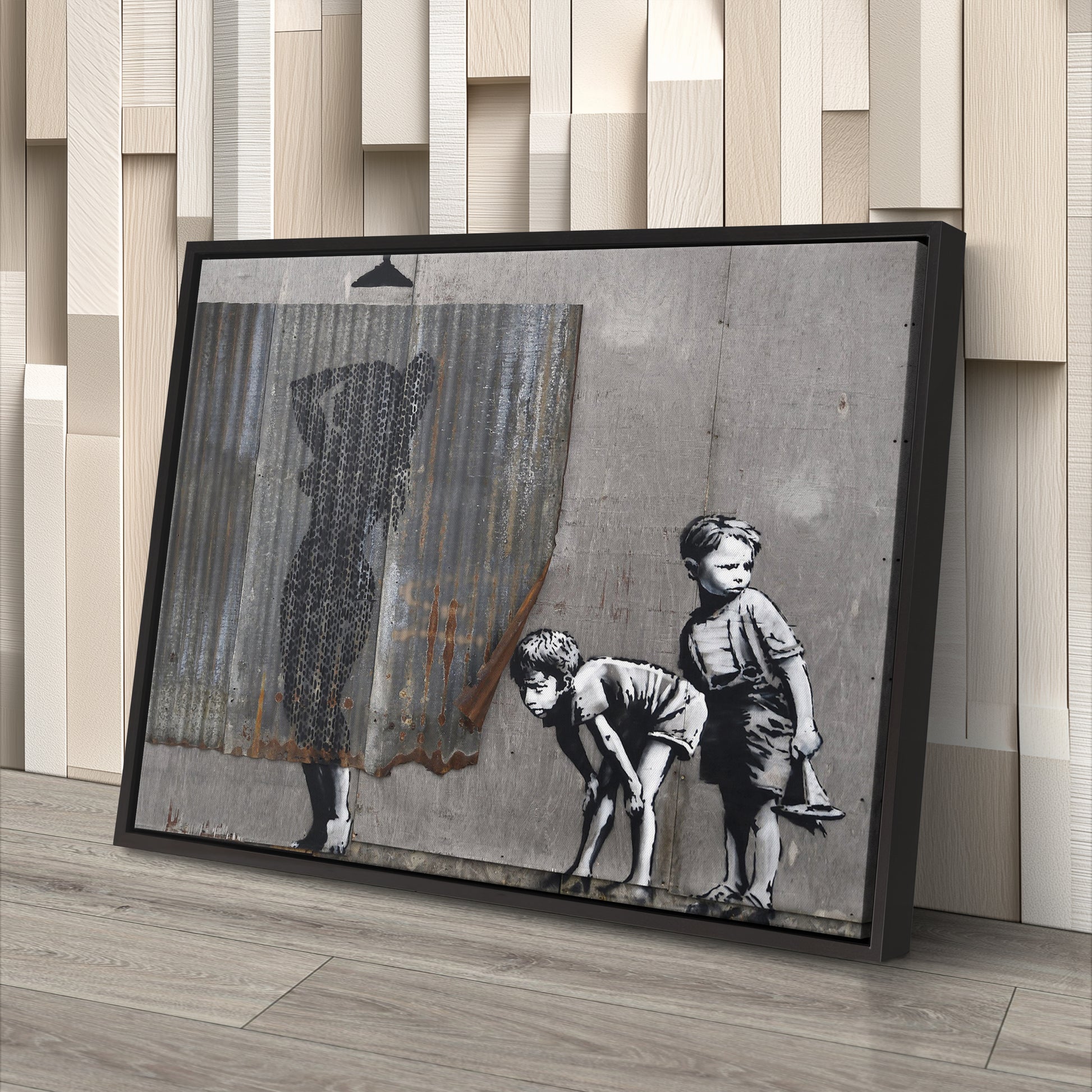 Bring urban art and subtle humor into your space with the Banksy 'Lady Shower' Canvas Print. Shop now and transform your wall into a statement of artistic rebellion.