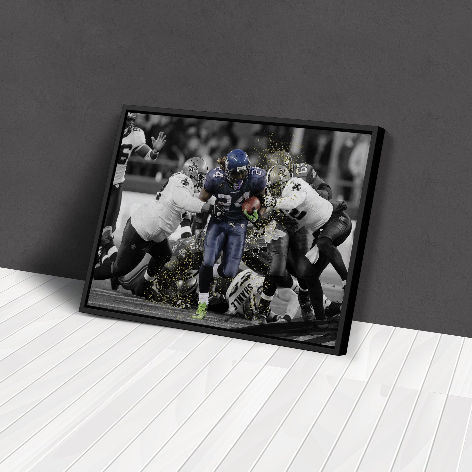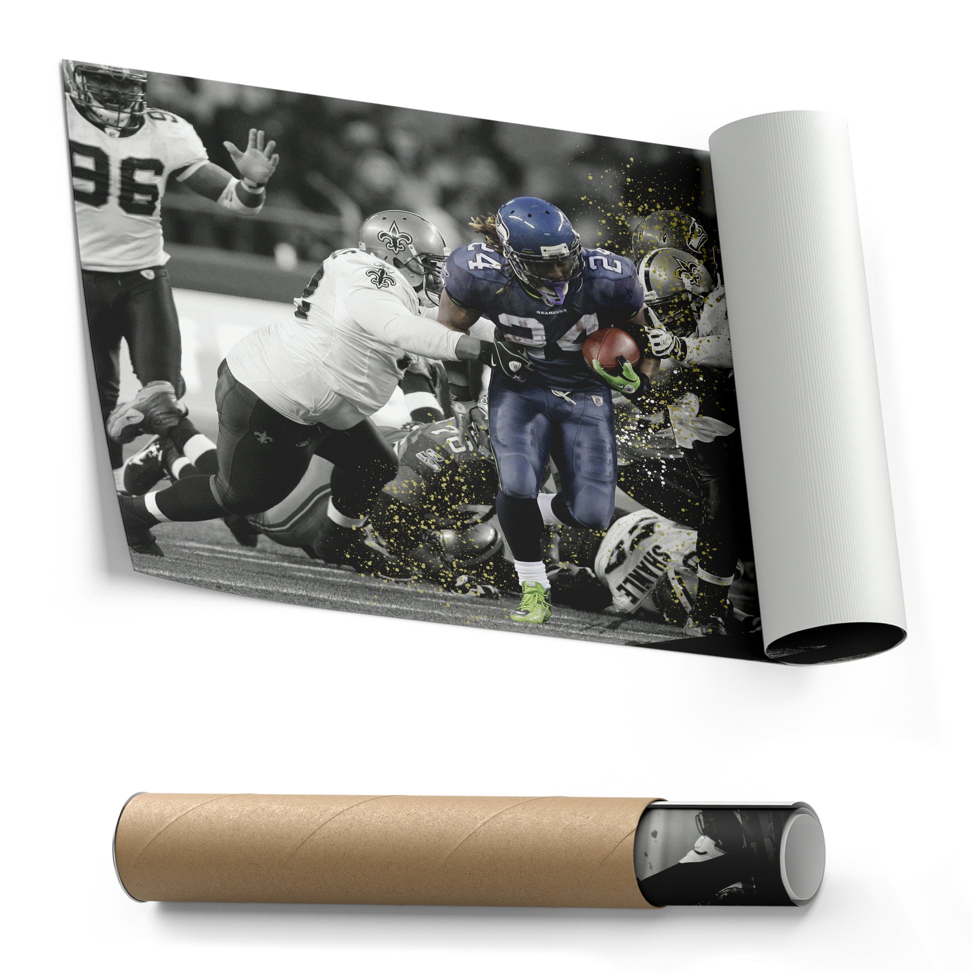 - Iconic NFL Moment: Captures Marshawn Lynch’s historic 'Beast Quake' touchdown run.
