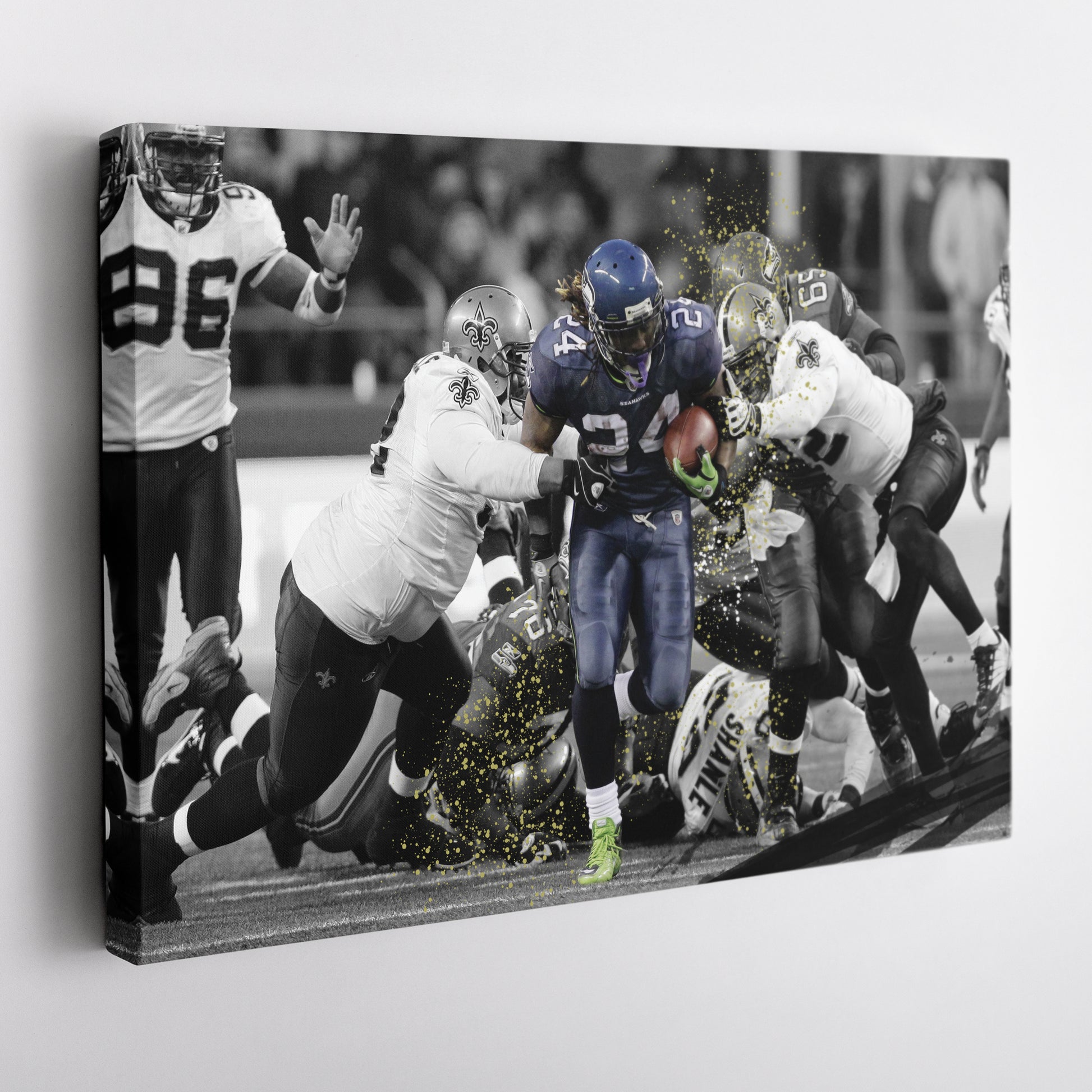 Relive one of the most legendary runs in NFL history with this The Beast Quake Seattle Seahawks Canvas Art. Featuring Marshawn Lynch’s electrifying 67-yard touchdown run against the New Orleans Saints in the 2010 NFC Wild Card Game, this high-quality canvas print captures the power, determination, and sheer dominance of 'Beast Mode.' The bold action shot and crisp details make it a must-have for Seahawks fans, NFL collectors, and football enthusiasts.