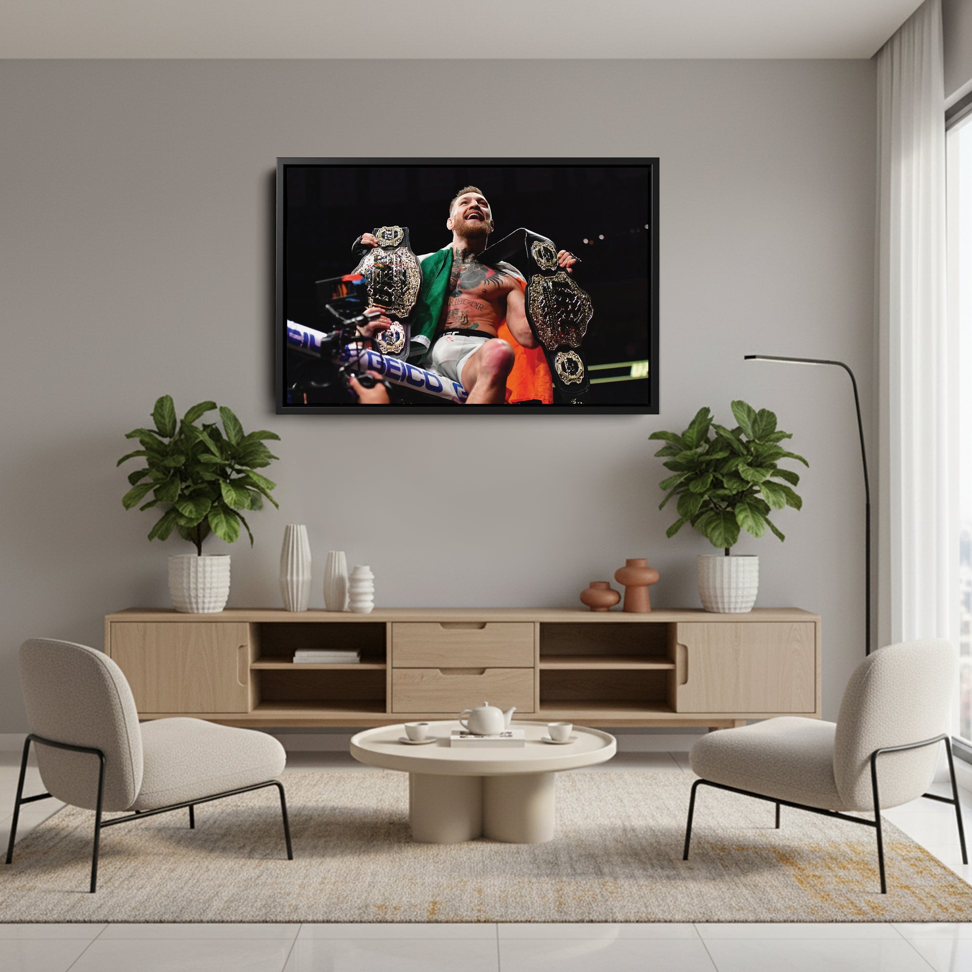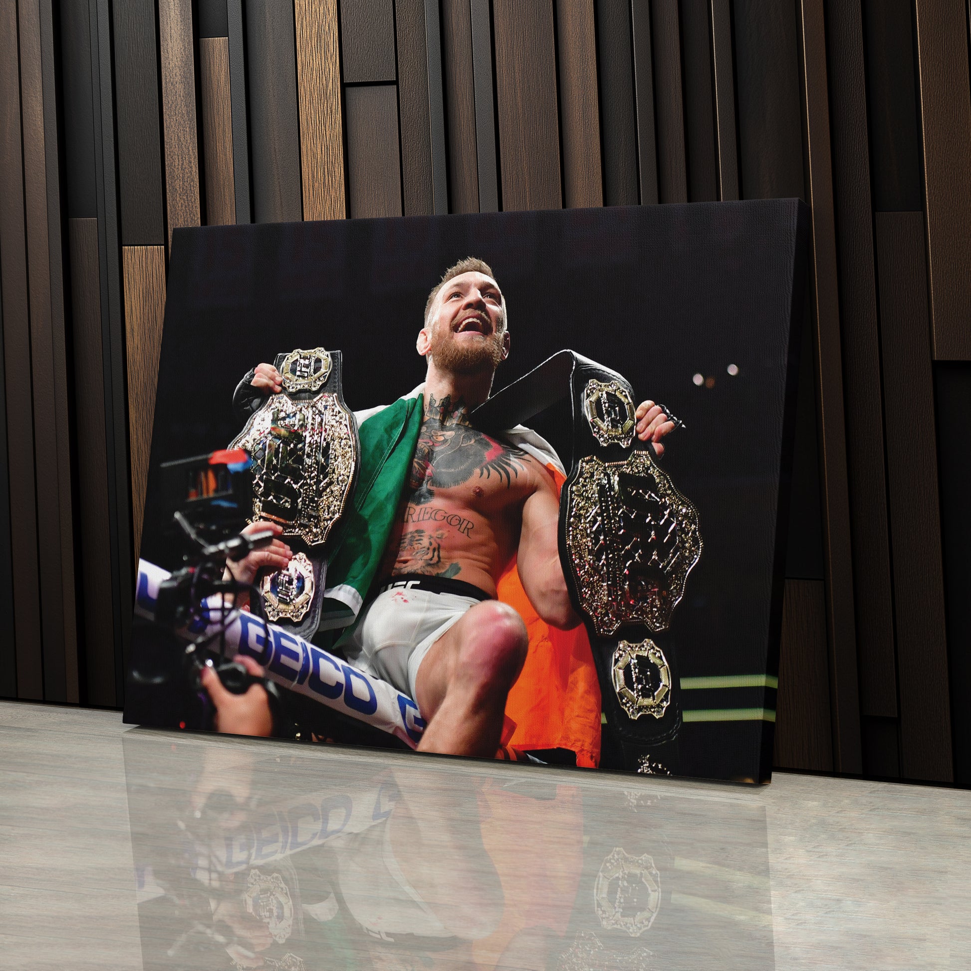 Celebrate McGregor’s UFC legacy with this Conor McGregor Championship Canvas Wall Art. Shop now to add an iconic piece of MMA history to your space!