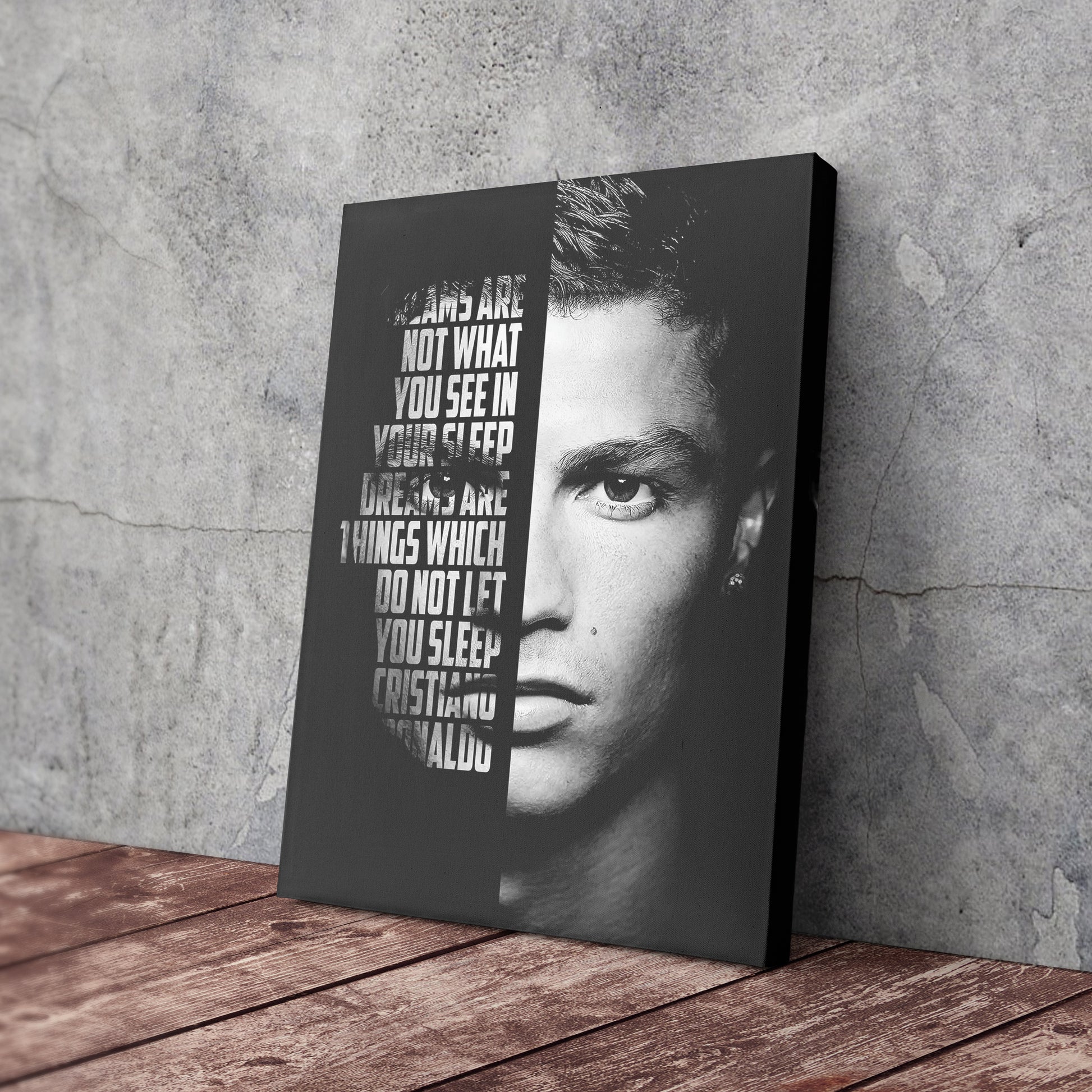 Motivate yourself with the winning mentality of Cristiano Ronaldo with this Motivational Quote Canvas Wall Art. Shop now to bring inspiration and soccer greatness into your space!