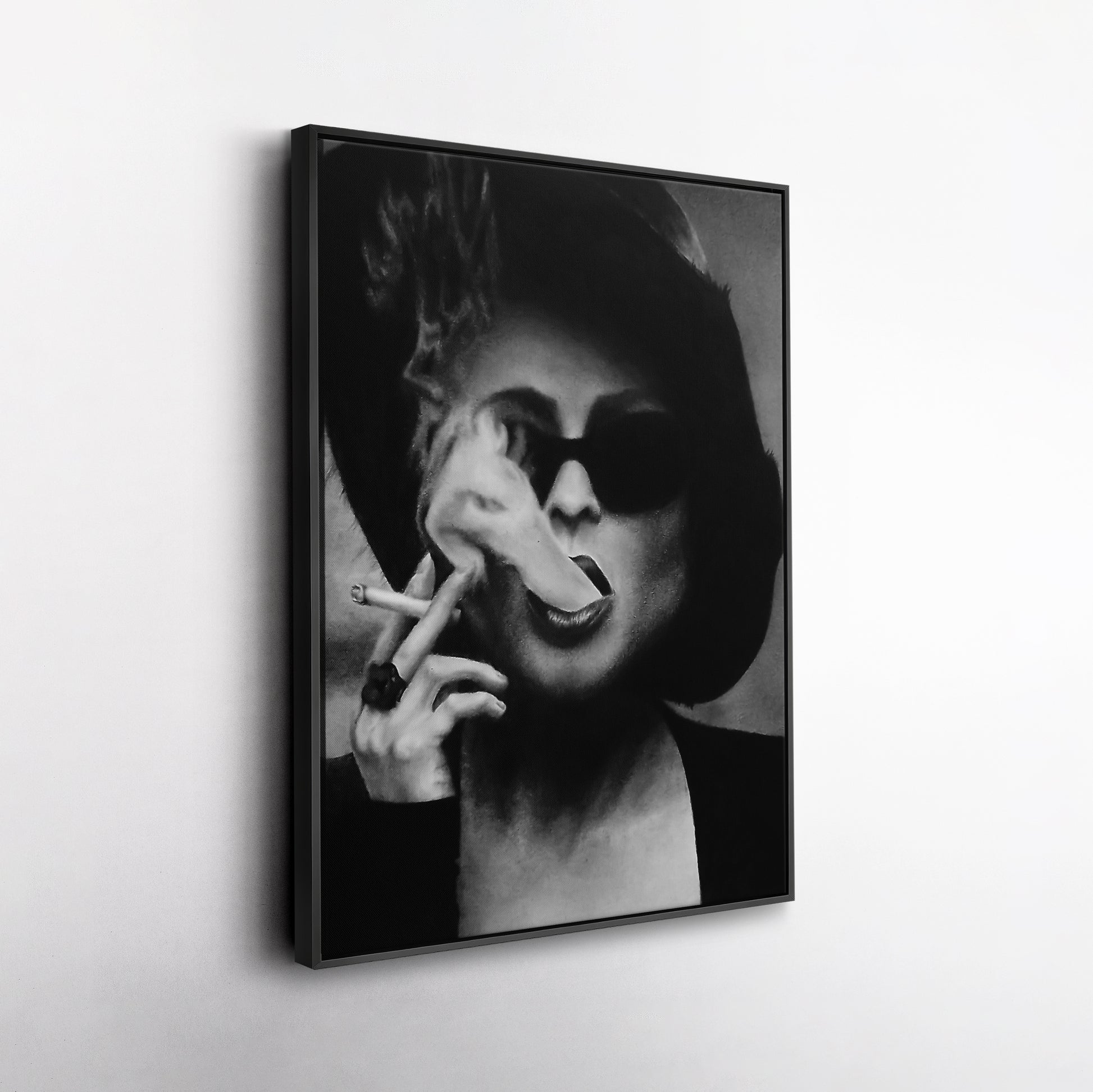 Dive into the intriguing world of Fight Club with this Marla Singer smoking canvas wall art. Shop now to bring cinematic style and edge to your decor!