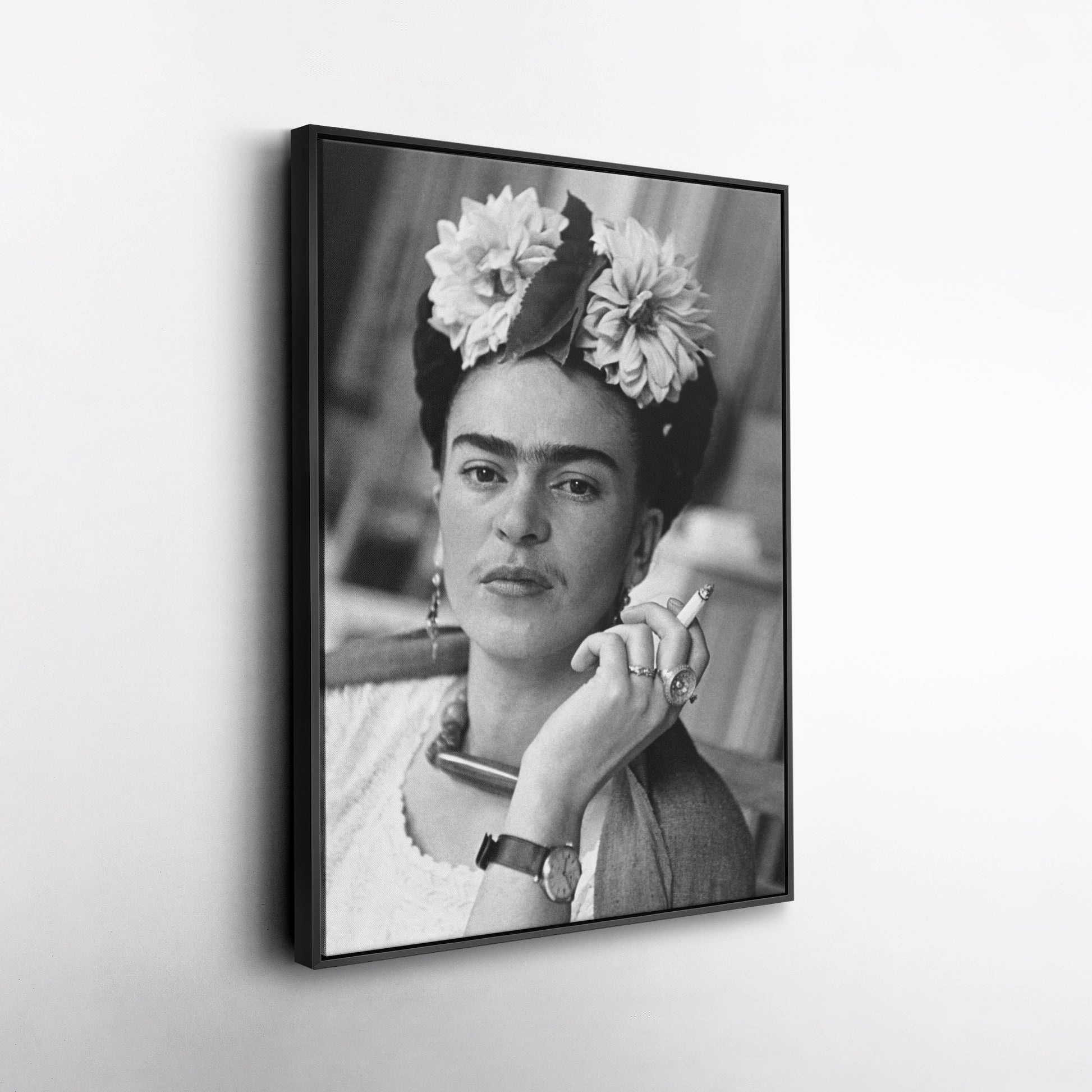 Frida Kahlo Smoking Black and White Canvas Wall Art – Iconic Art Print