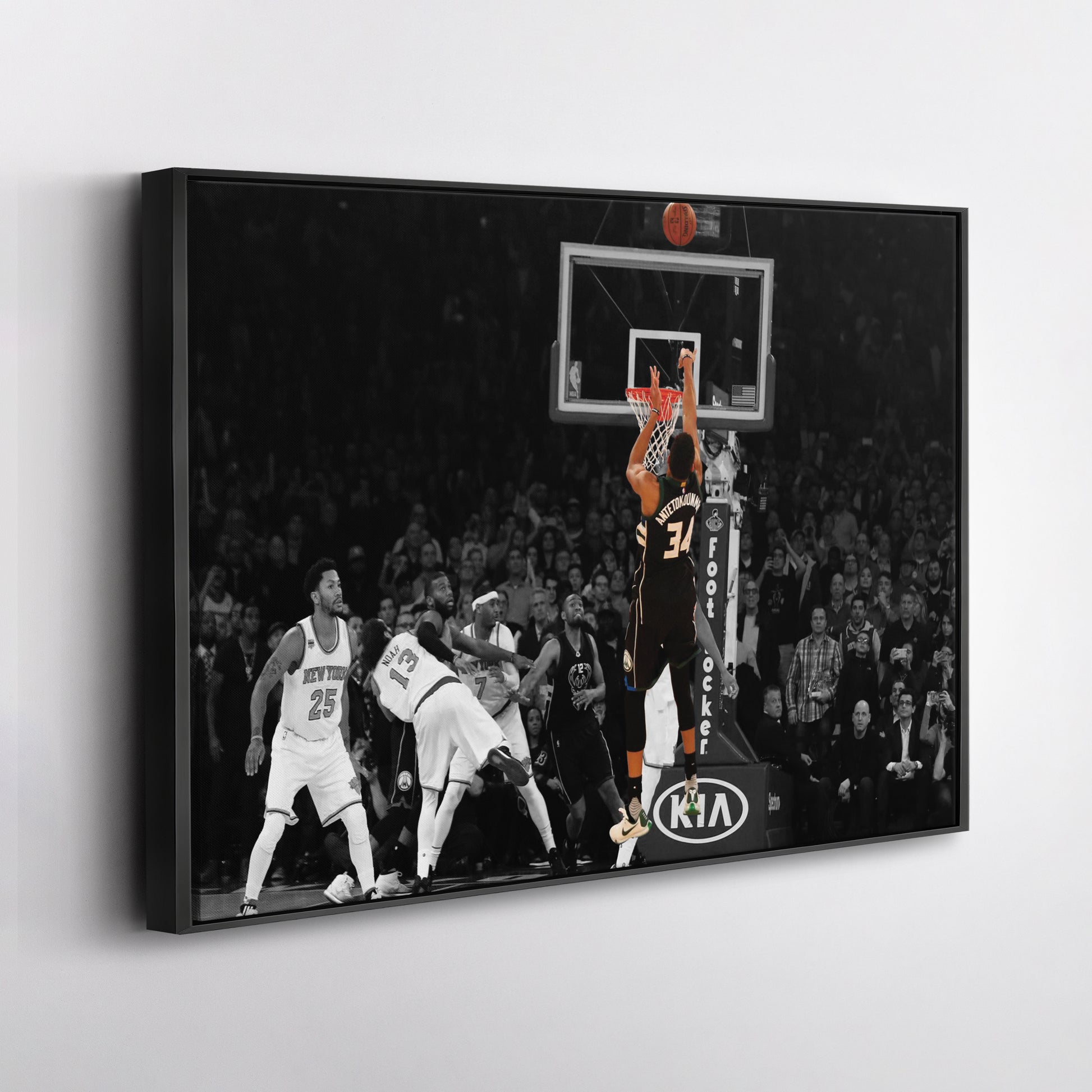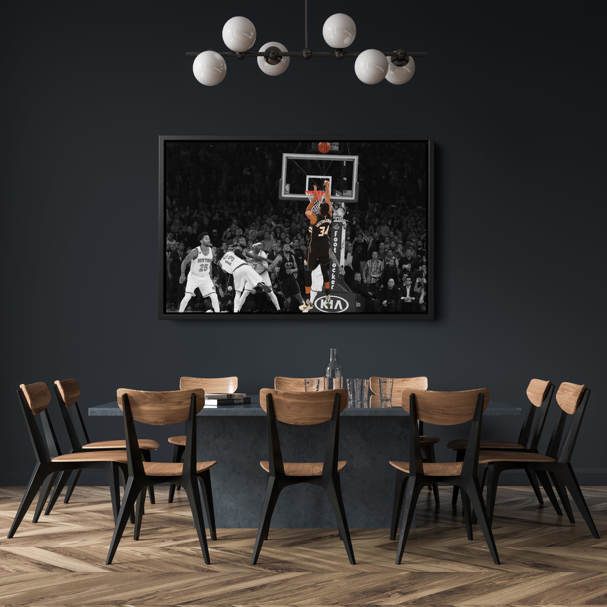 Own a piece of NBA history with this Giannis Antetokounmpo Buzzer Beater Canvas Wall Art. Shop now to bring the excitement of the game into your space!