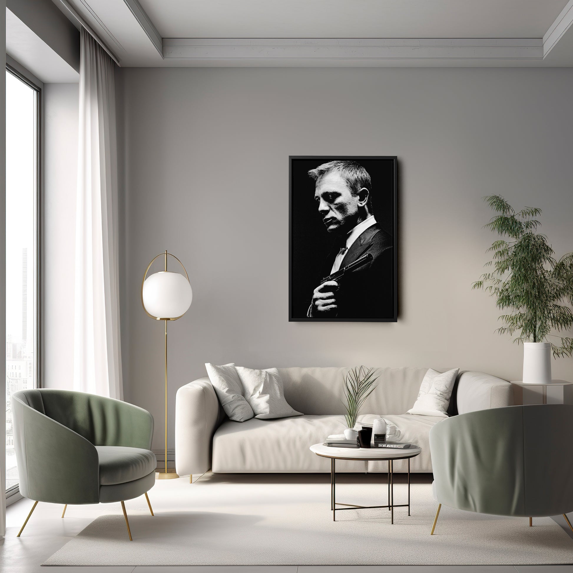 James Bond Black and White Painting Canvas Wall Art – Timeless Spy Decor
