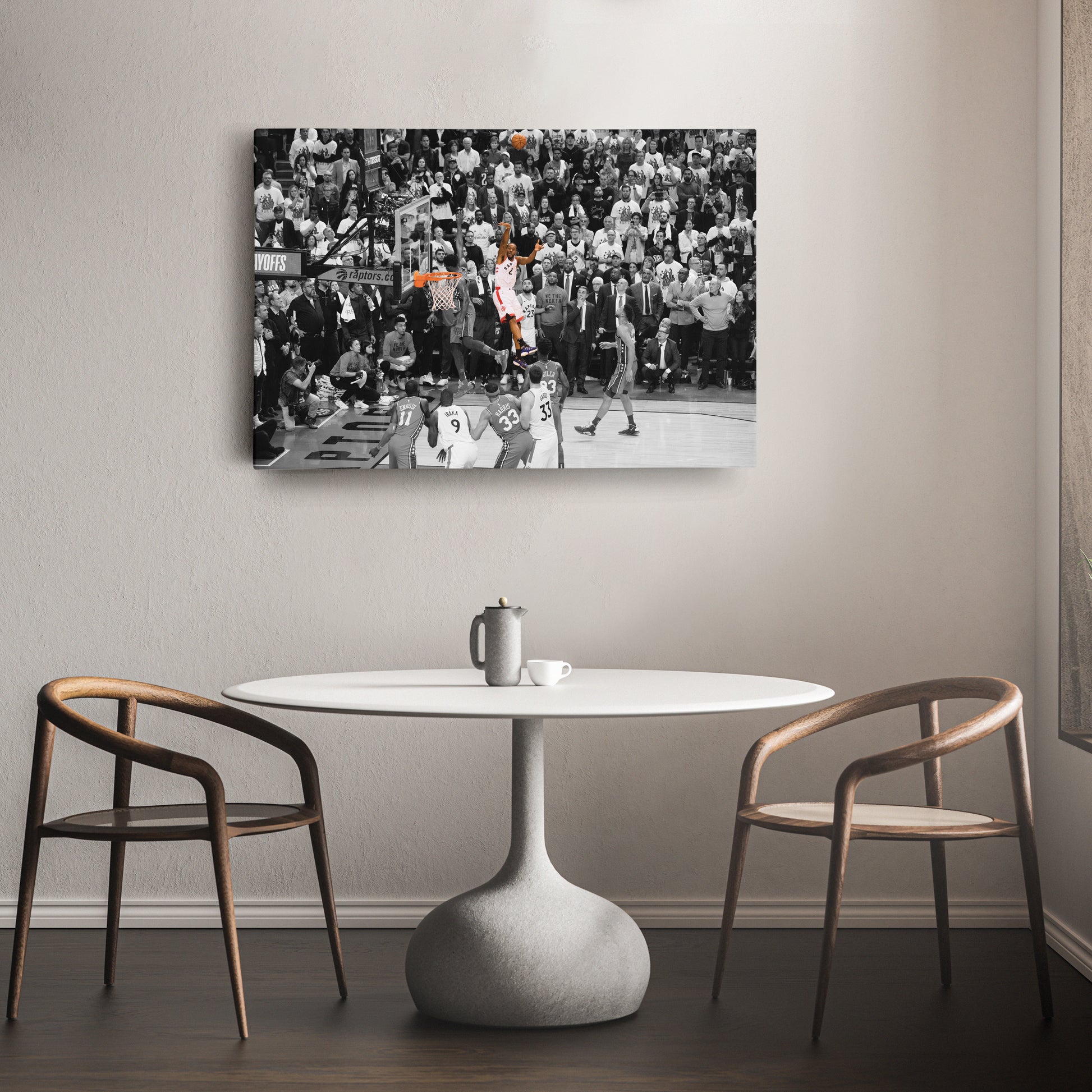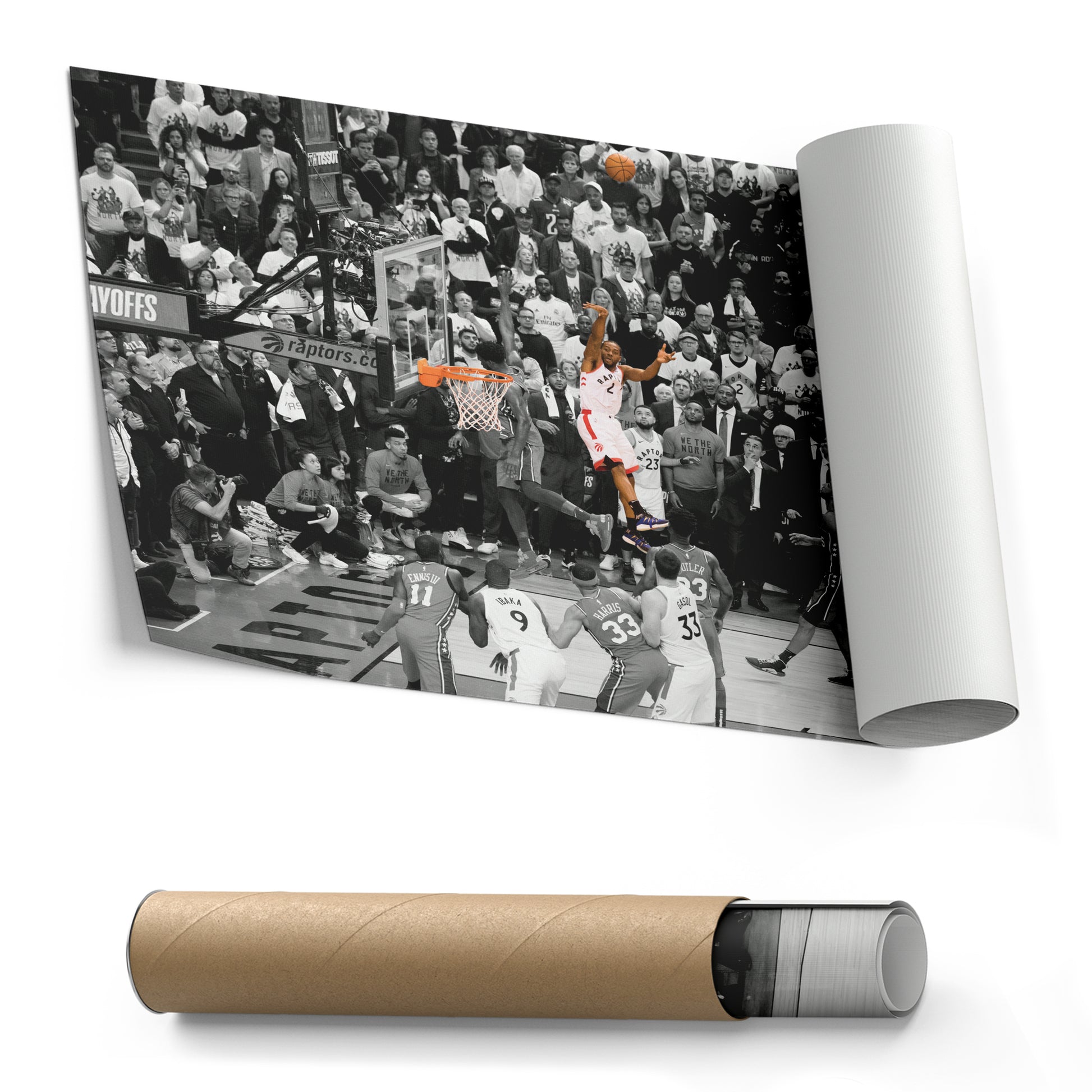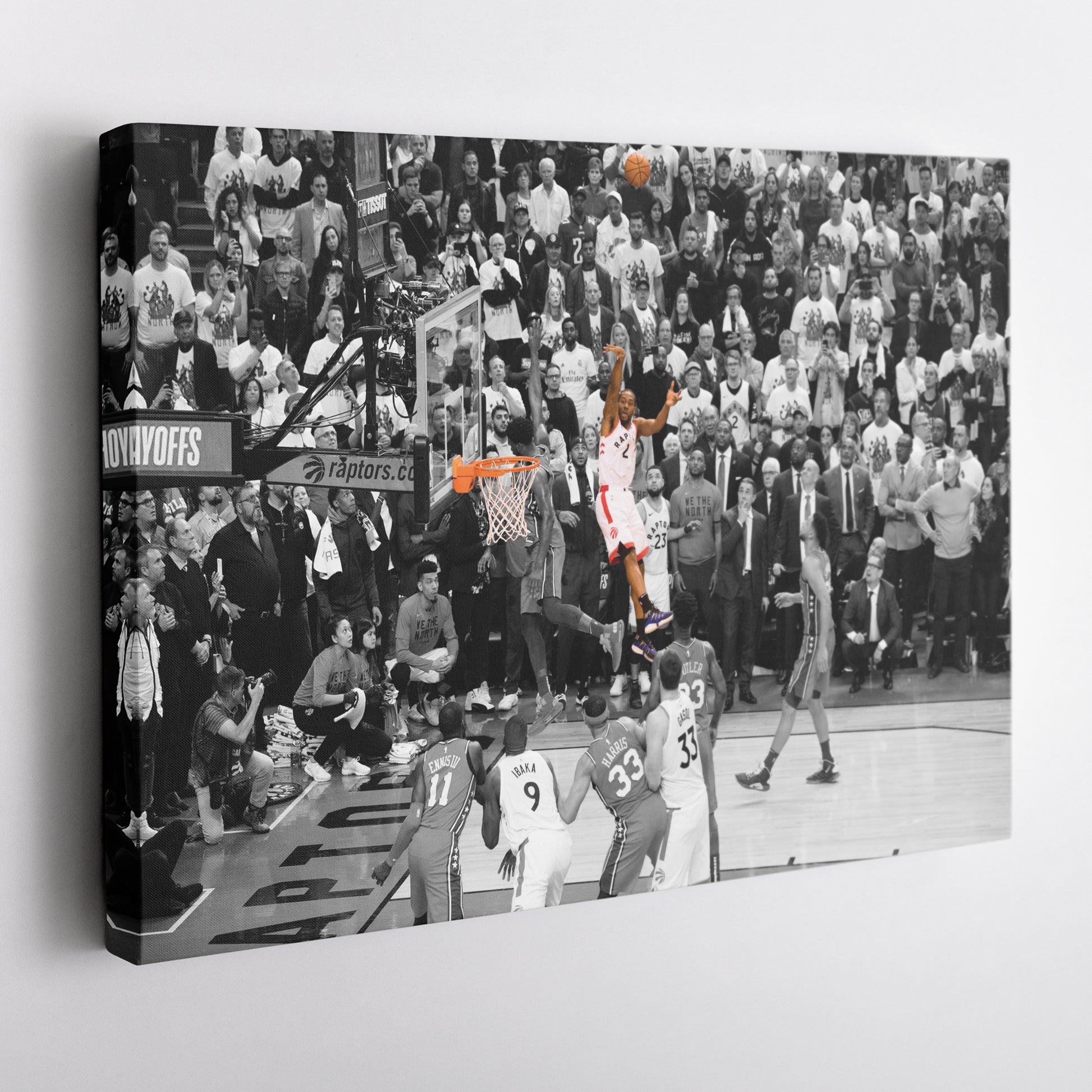 Relive the legendary moment when Kawhi Leonard’s buzzer-beater sent the Toronto Raptors to the Eastern Conference Finals with this NBA Playoff Canvas Wall Art. Capturing the iconic Game 7 shot against the Philadelphia 76ers in the 2019 NBA Playoffs, this high-quality canvas print showcases Leonard’s clutch performance, raw emotion, and basketball greatness. The sharp details and dramatic composition make it a must-have for Raptors fans, NBA collectors, and basketball enthusiasts.