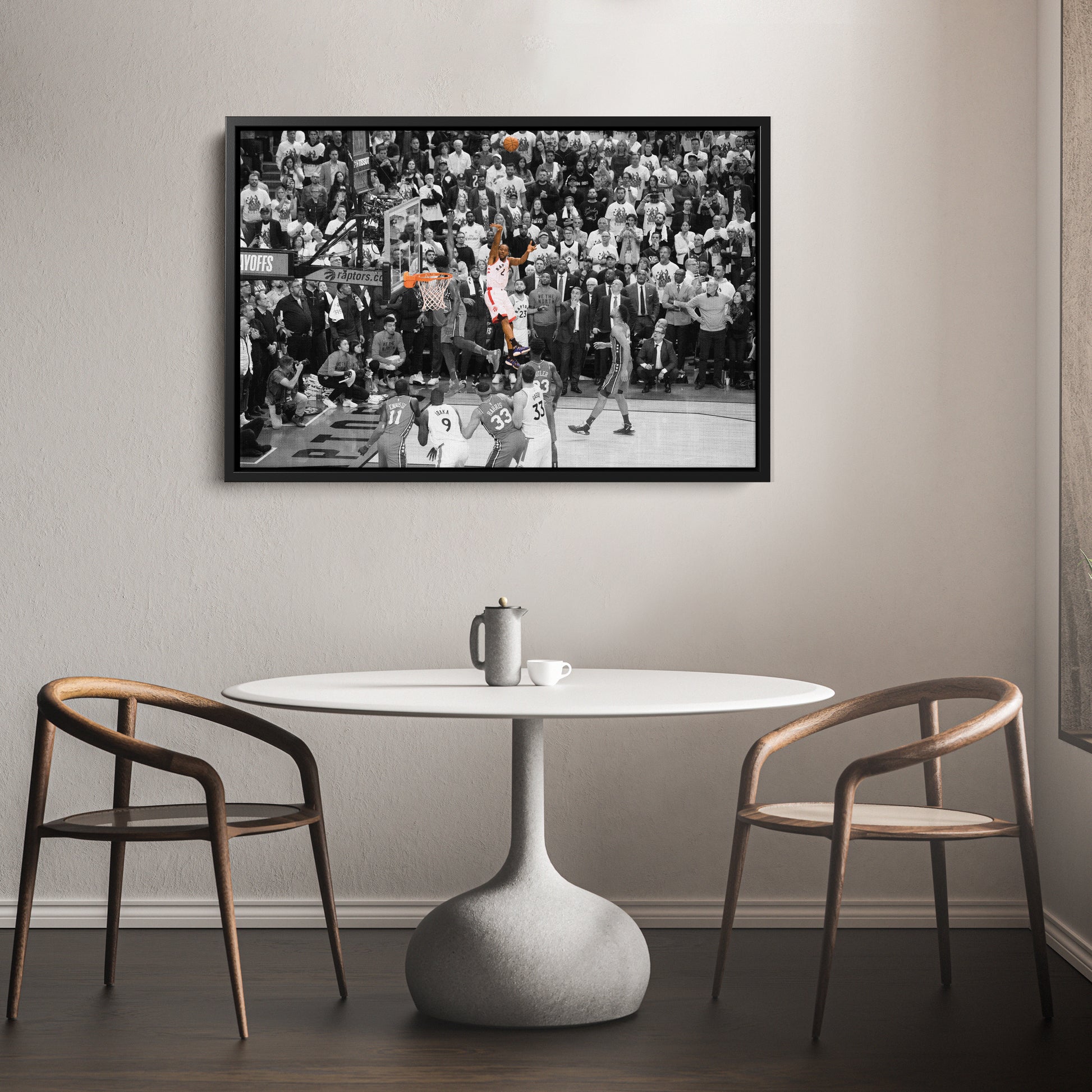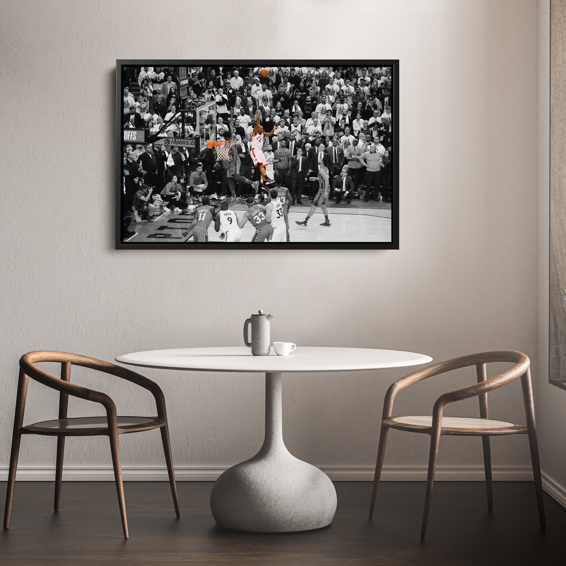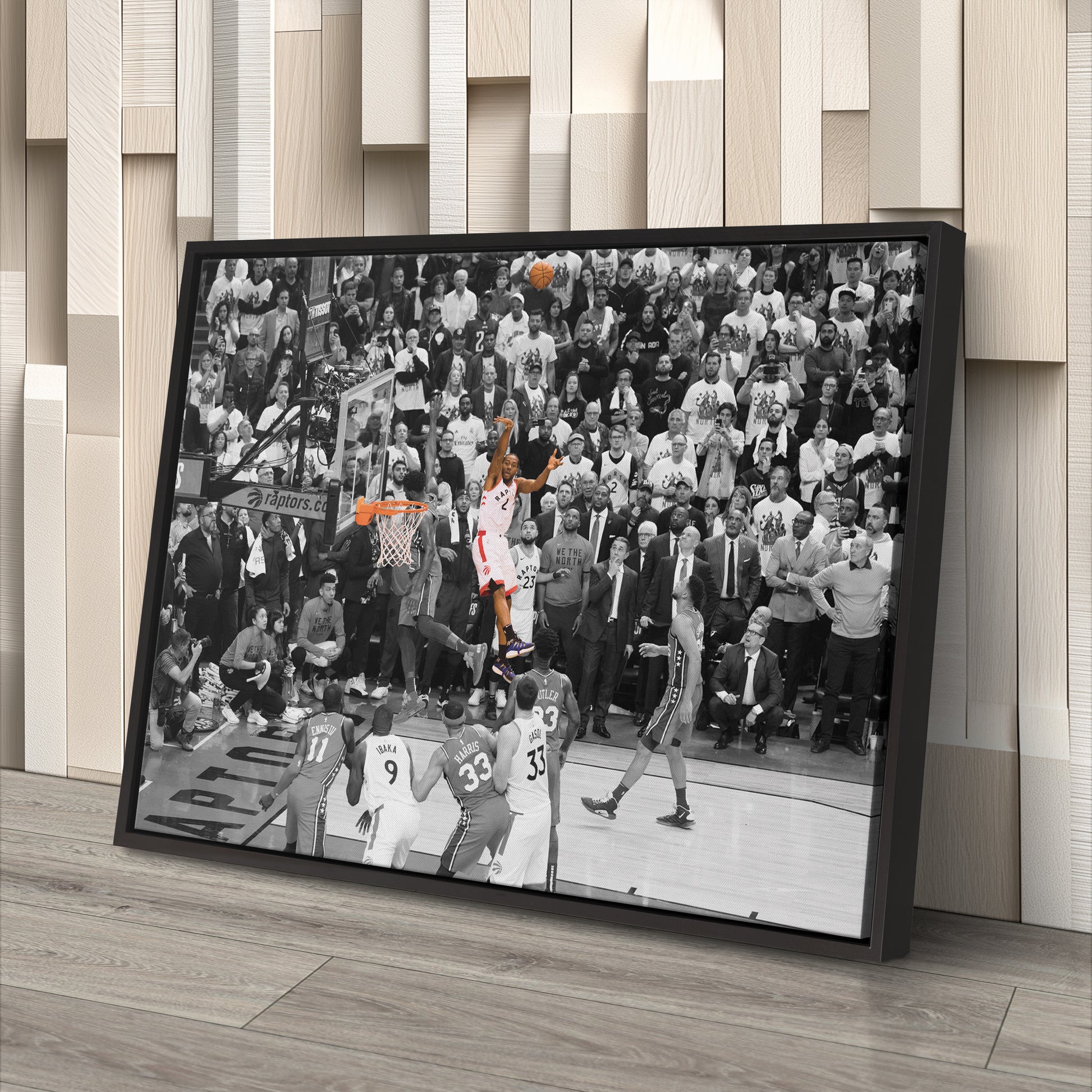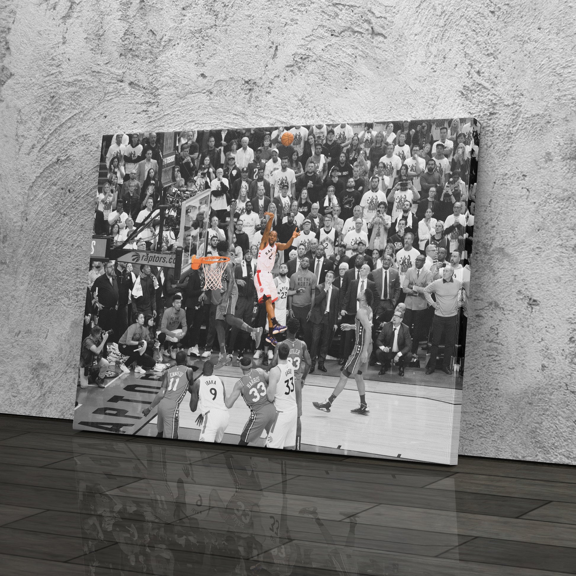 Relive the legendary moment when Kawhi Leonard’s buzzer-beater sent the Toronto Raptors to the Eastern Conference Finals with this NBA Playoff Canvas Wall Art. Capturing the iconic Game 7 shot against the Philadelphia 76ers in the 2019 NBA Playoffs, this high-quality canvas print showcases Leonard’s clutch performance, raw emotion, and basketball greatness. The sharp details and dramatic composition make it a must-have for Raptors fans, NBA collectors, and basketball enthusiasts.