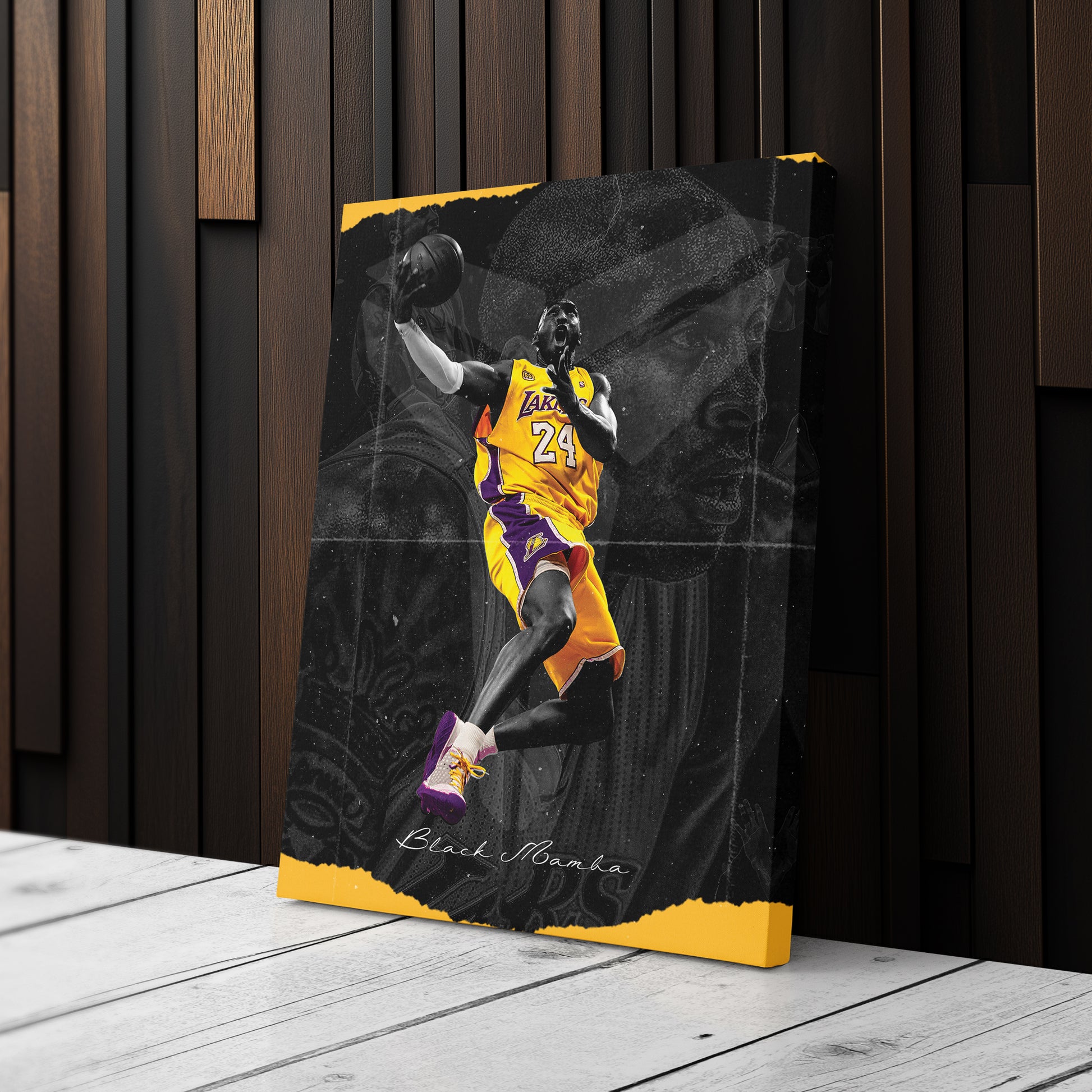 Show your admiration for Kobe Bryant with this bold black background canvas wall art. Shop now to bring the spirit of NBA greatness to your space!