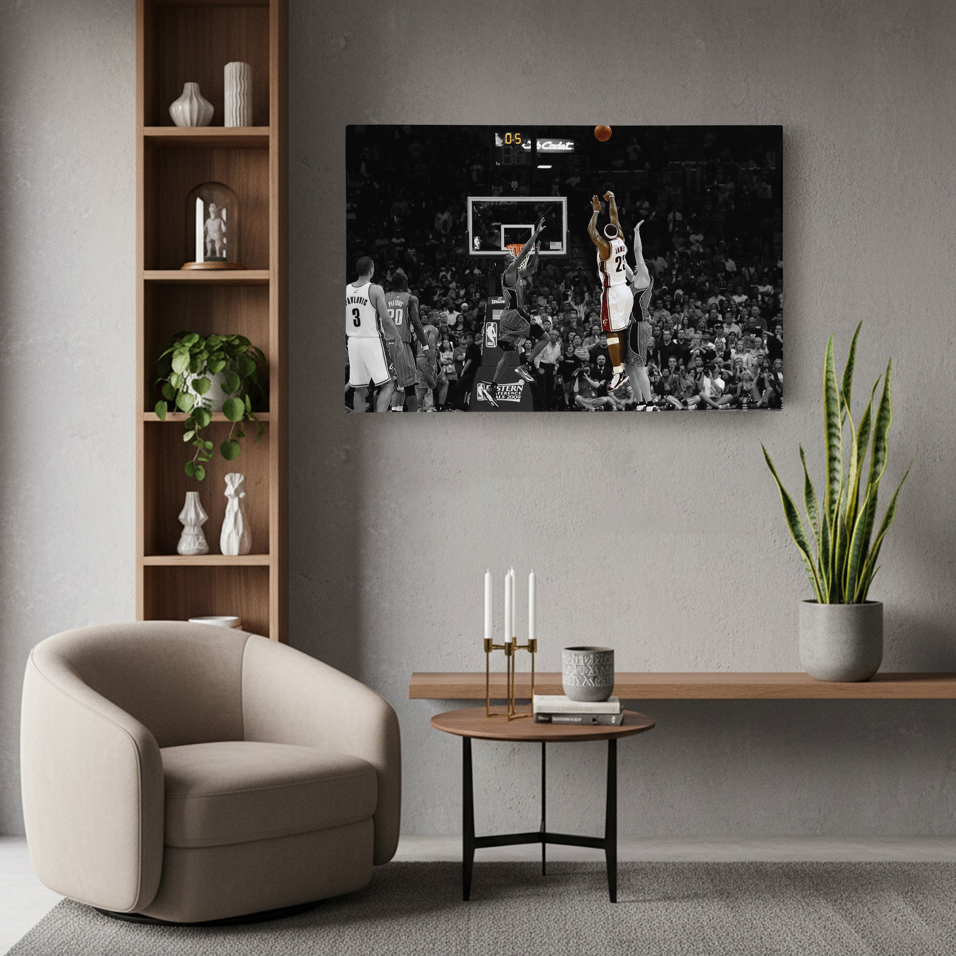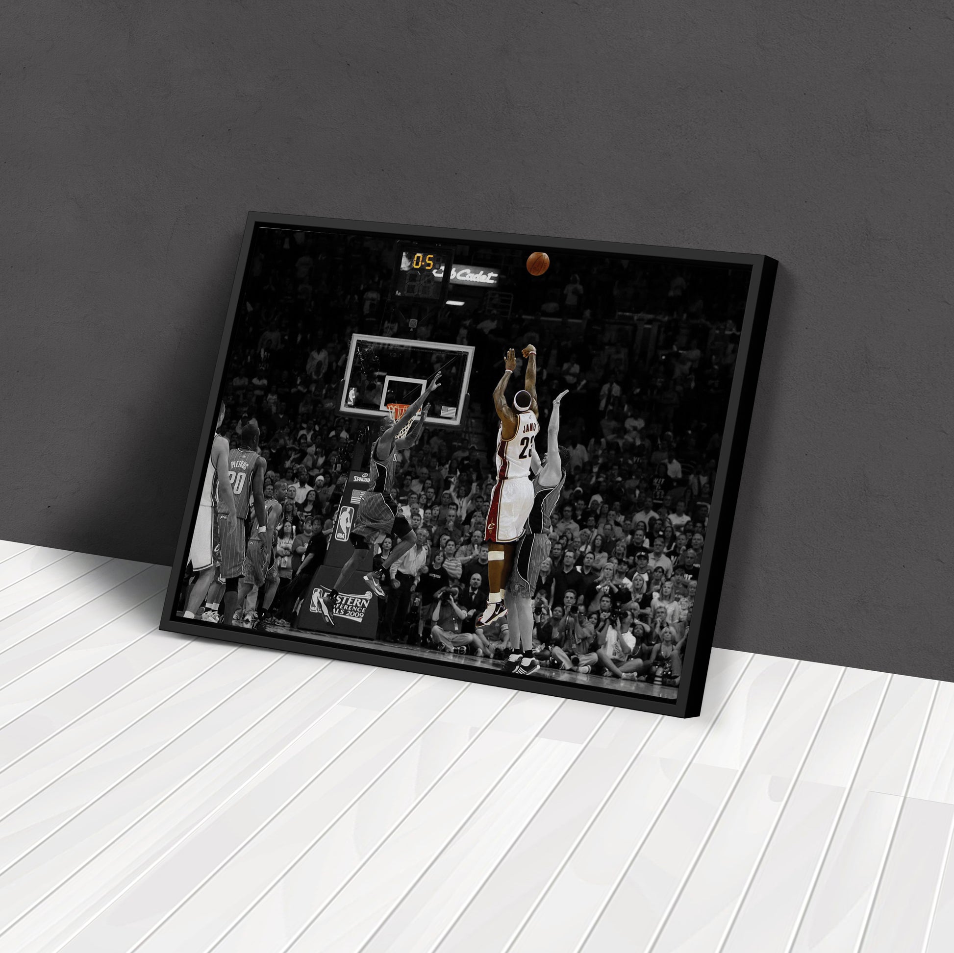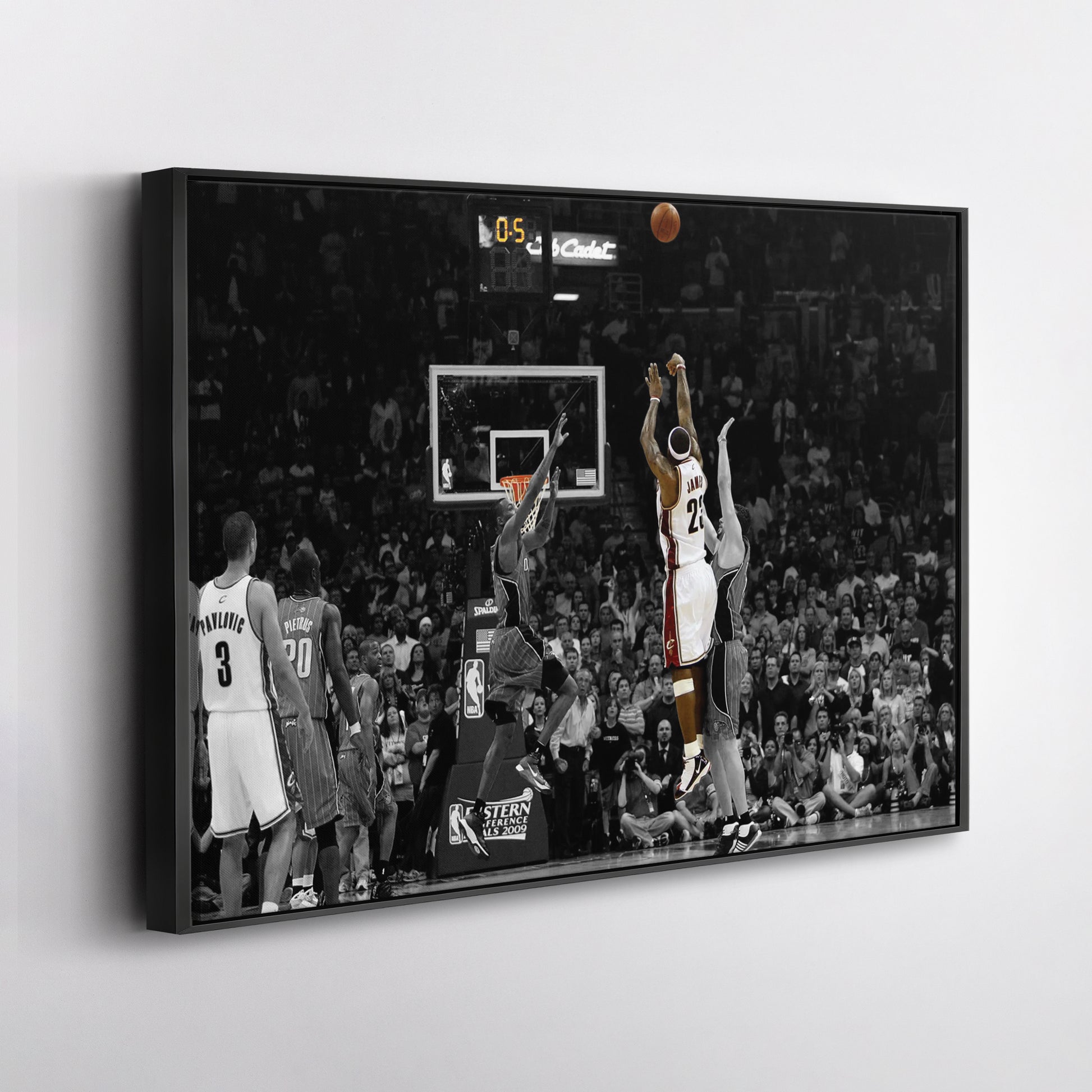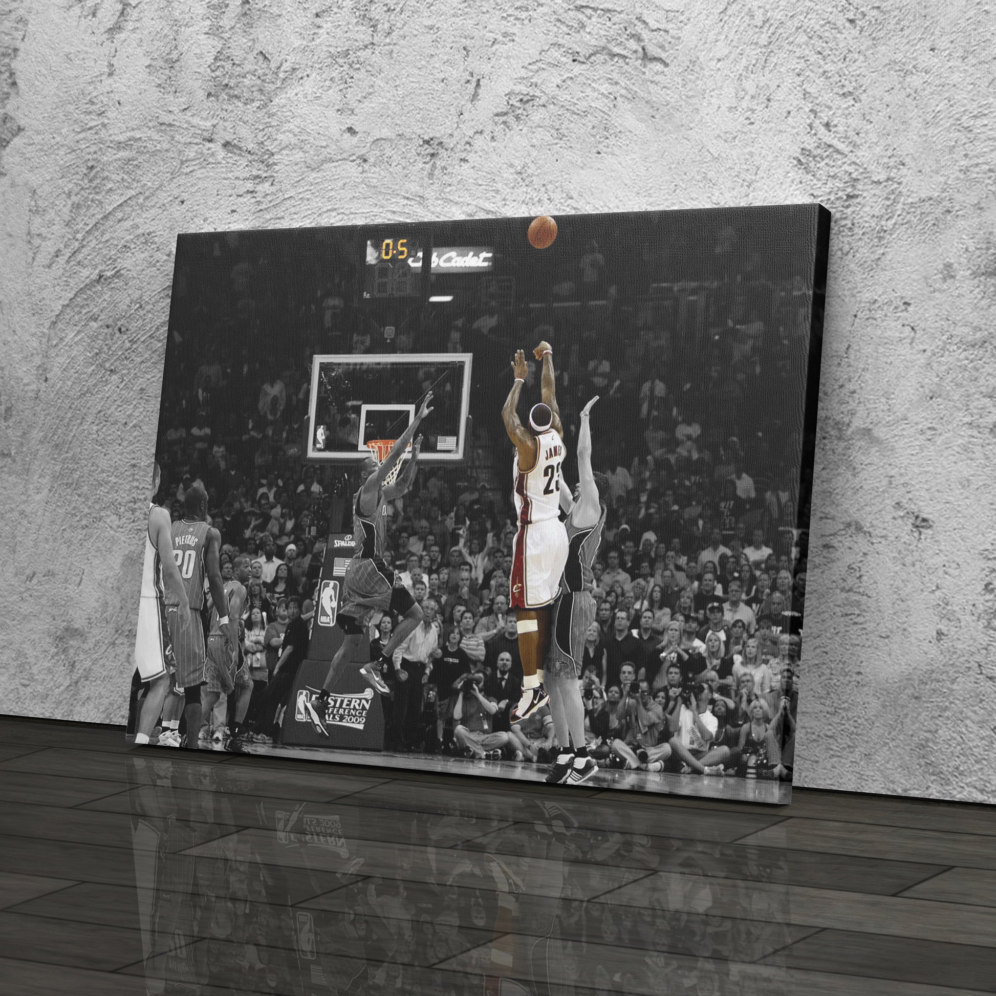 Celebrate LeBron James’ clutch playoff heroics with this Game-Winning Buzzer vs Magic Canvas Wall Art. Shop now to bring the thrill of NBA history into your space!