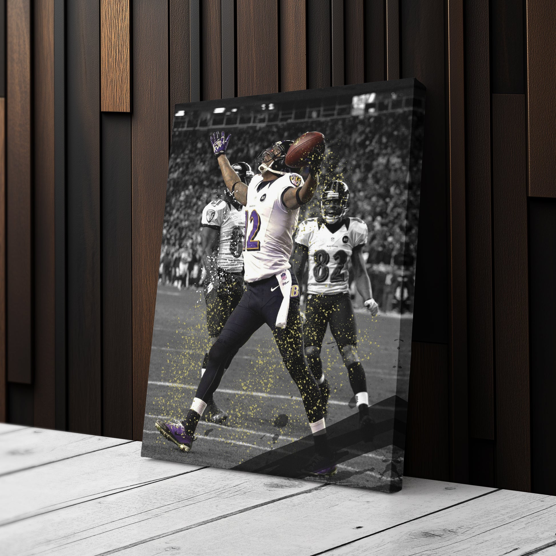 Relive one of the greatest plays in NFL playoff history with this The Mile High Miracle Canvas Art. Featuring the legendary 70-yard touchdown pass from Joe Flacco to Jacoby Jones in the 2012 AFC Divisional Playoff Game between the Baltimore Ravens and Denver Broncos, this high-quality canvas print captures the intensity, drama, and excitement of a game-changing moment. The bold action shot and crisp details make it a must-have for Ravens fans, NFL collectors, and football history enthusiasts.