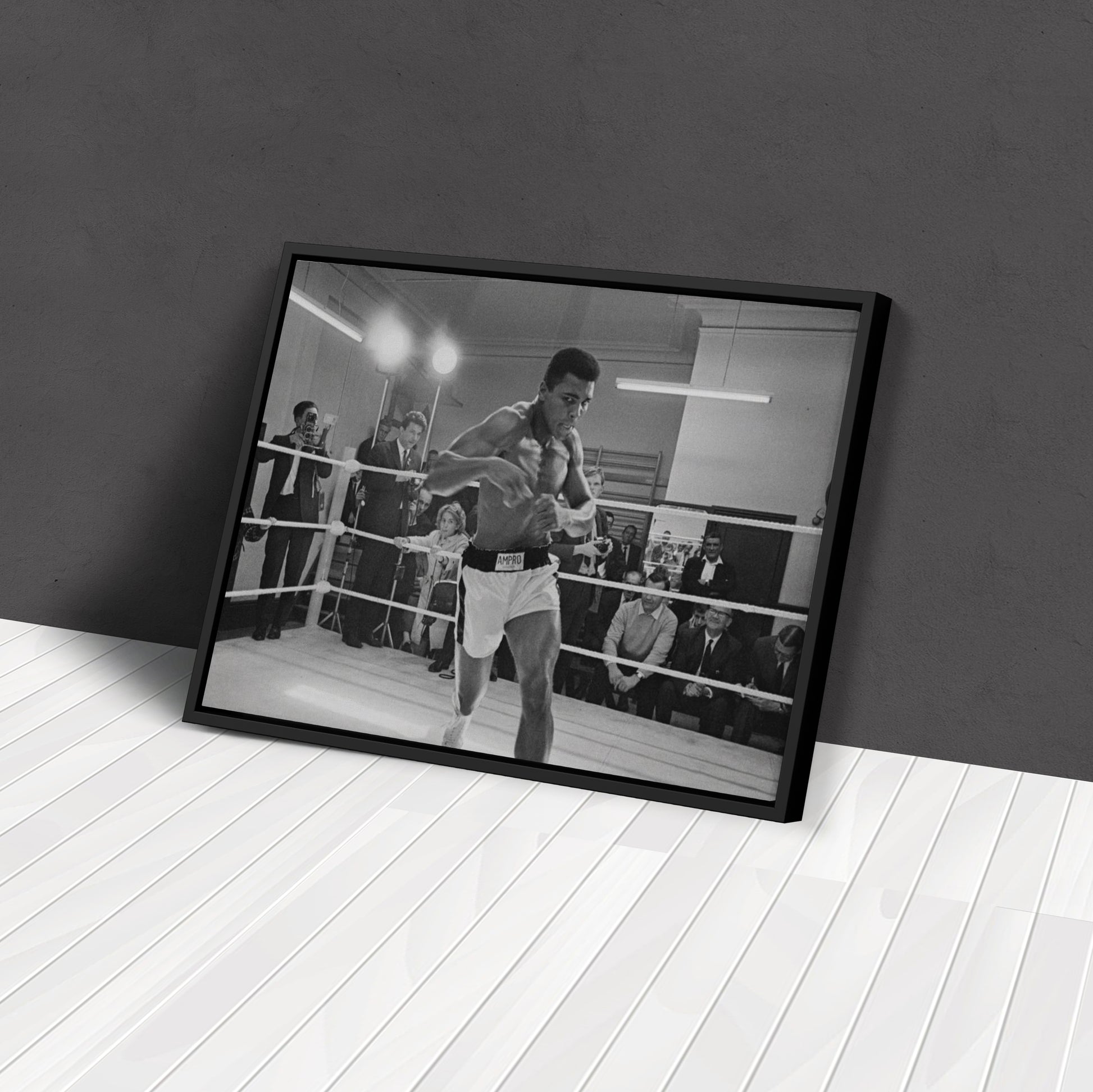 Celebrate the determination and grit of Muhammad Ali with this Training Canvas Art. Featuring an iconic black-and-white depiction of the boxing legend during one of his intense training sessions, this high-quality canvas print captures the essence of a champion’s dedication and perseverance. The timeless monochrome aesthetic adds sophistication and inspiration to any space.