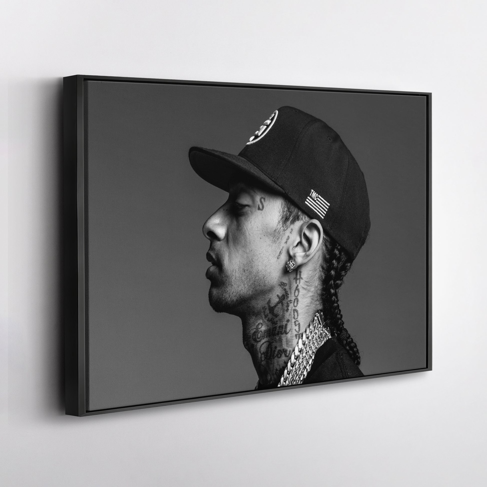 Celebrate the legacy of Nipsey Hussle with this elegant black-and-white canvas wall art. Shop now to bring his inspiring presence into your space!