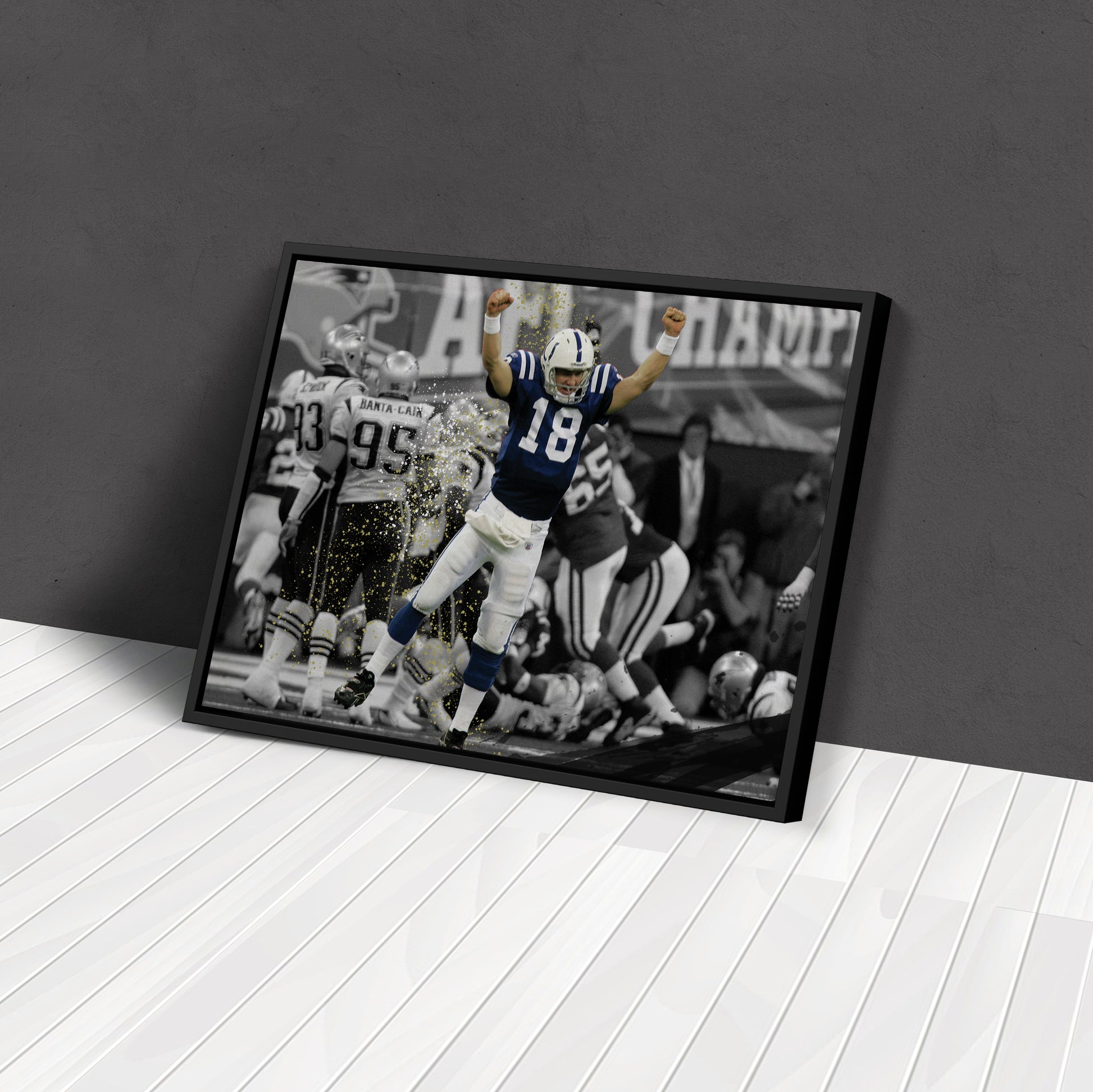 Celebrate Peyton Manning’s legendary AFC Championship triumph with this NFL Colts vs. Patriots Canvas Art. Shop now to own a piece of football greatness!
