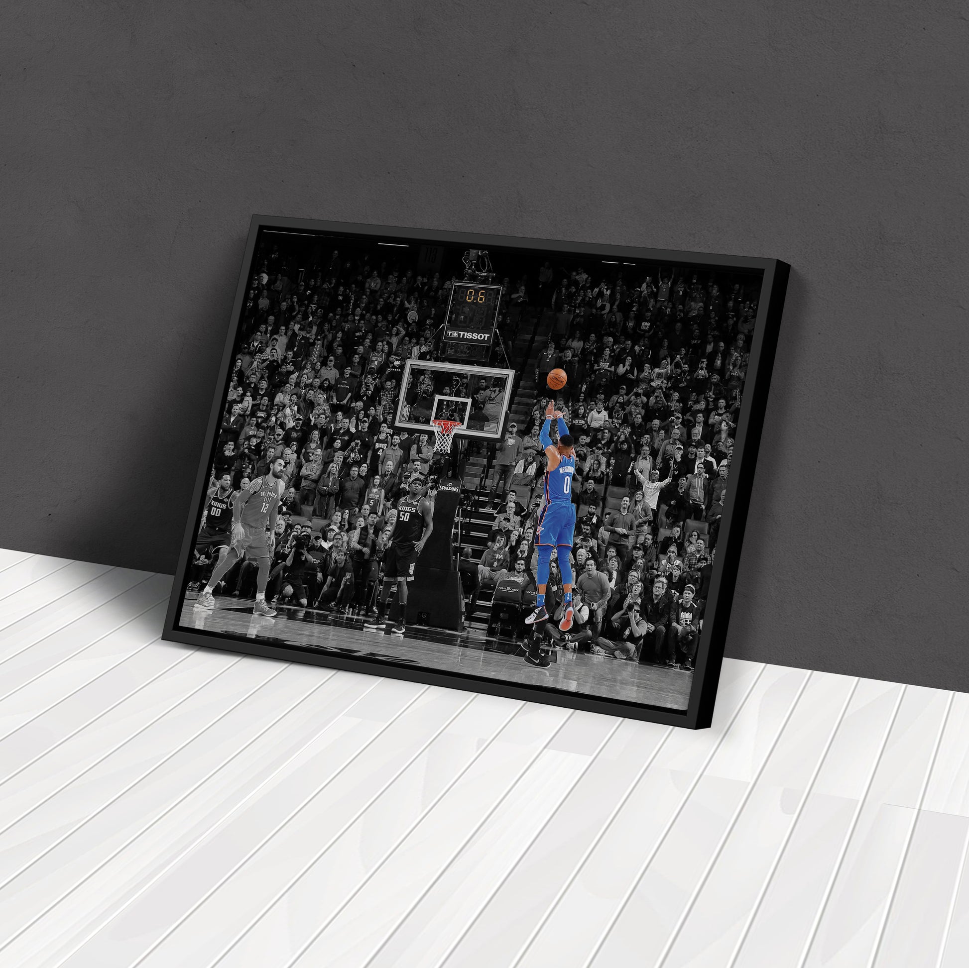 Capture the electrifying energy of Russell Westbrook's clutch game-winner with this Buzzer Beater Canvas Art. Featuring the iconic moment when Westbrook sealed victory for the Oklahoma City Thunder against the Sacramento Kings, this high-quality canvas print embodies intensity, skill, and pure basketball greatness. The bold action shot and crisp details make it a must-have for Thunder fans, NBA collectors, and basketball enthusiasts.
