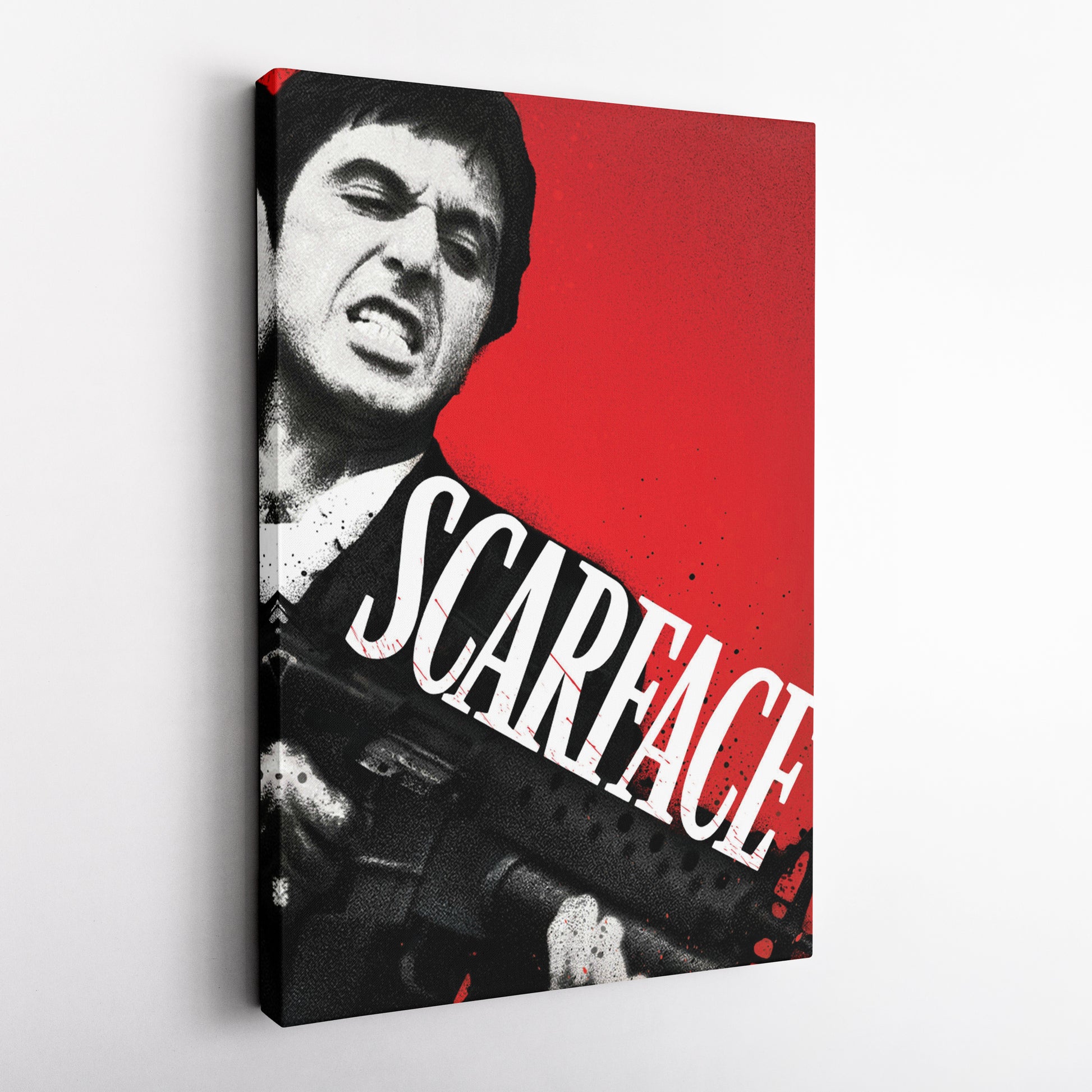 Celebrate the cinematic brilliance of Scarface with this Movie Canvas Wall Art. Featuring a striking depiction of Tony Montana, portrayed by Al Pacino, this high-quality canvas print captures the intensity, style, and legacy of one of the most iconic gangster films of all time. The bold design and vibrant details make this artwork a must-have for fans of classic cinema and gangster genre enthusiasts.