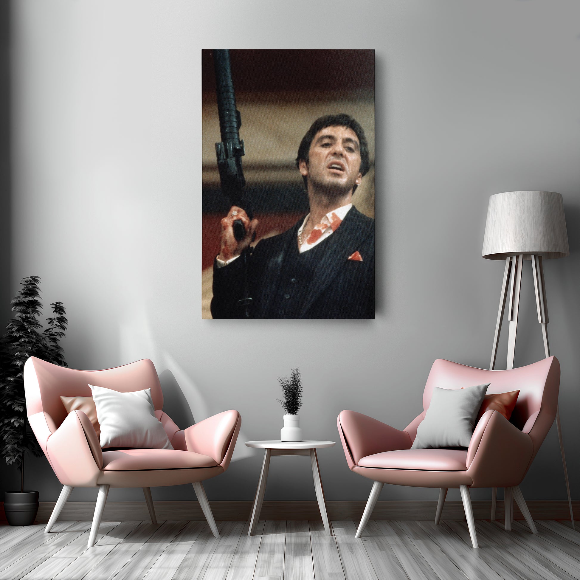 Relive the legendary moments of Scarface with this Al Pacino with Gun Canvas Wall Art. Shop now to bring the unforgettable legacy of Tony Montana into your decor!