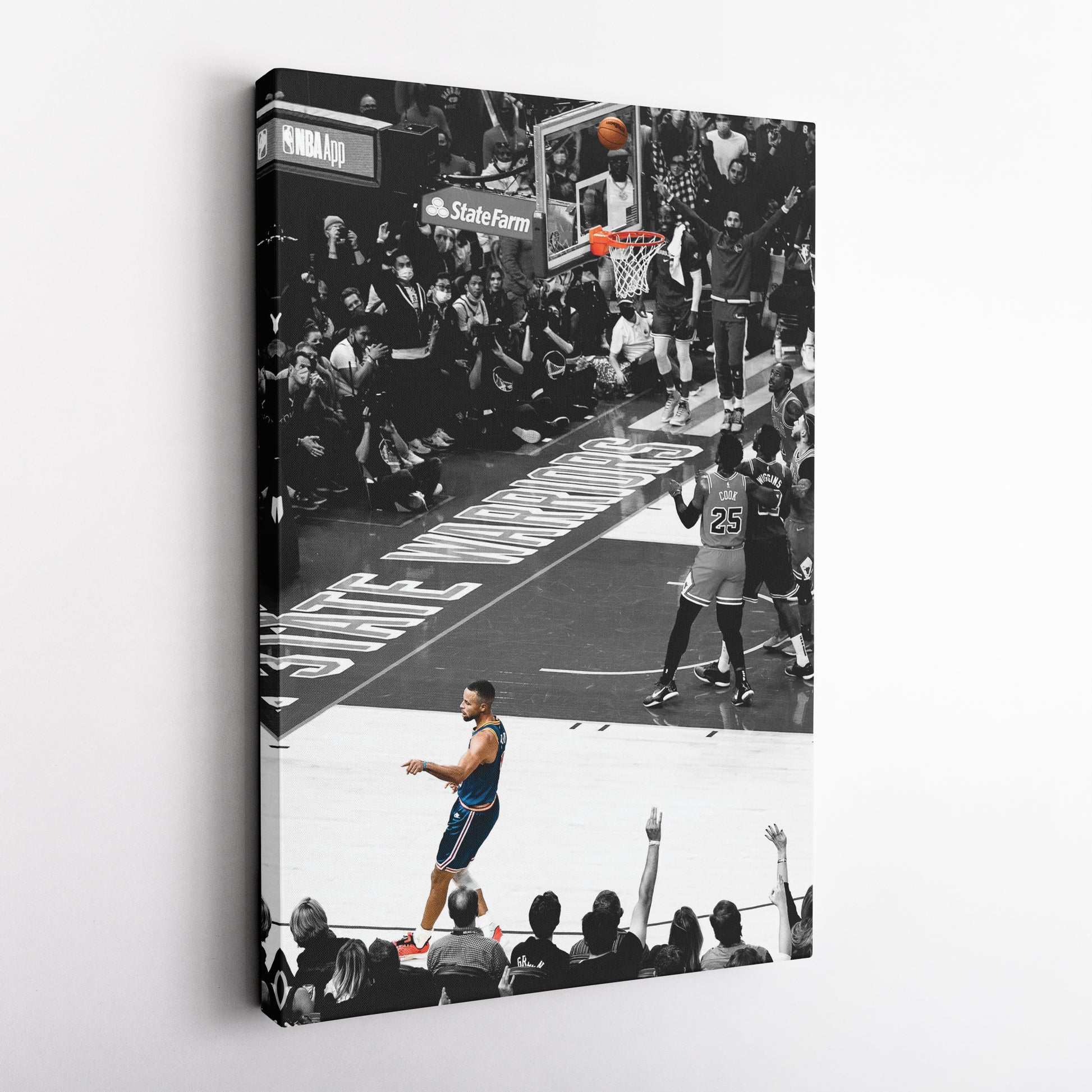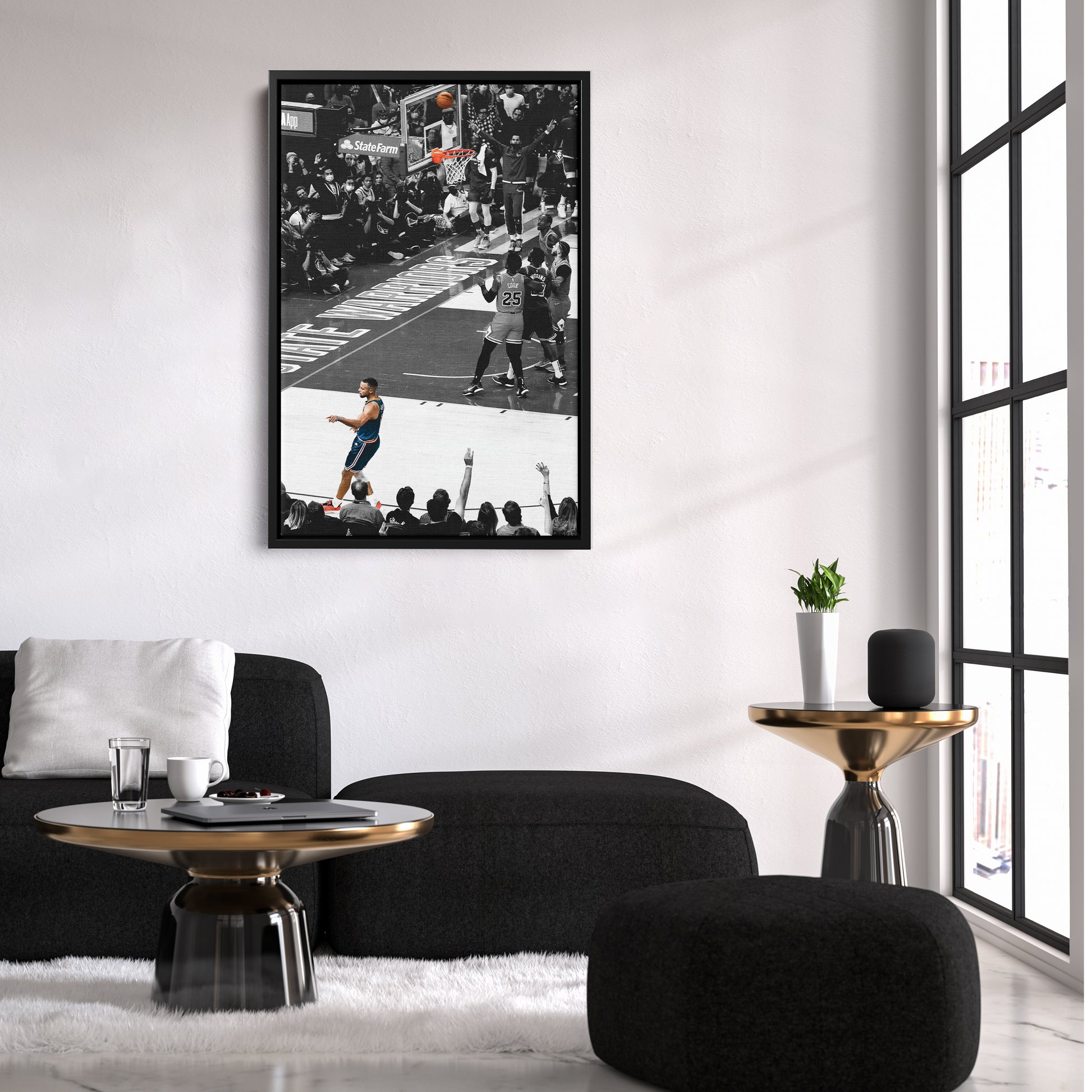 Celebrate the confidence and skill of Stephen Curry with this No-Look Shot Canvas Art. Featuring the iconic moment when Curry effortlessly drains a three-pointer while turning away in celebration, this high-quality canvas print captures the swagger, precision, and game-changing energy that defines his career. The dynamic composition and crisp details make it a must-have for Golden State Warriors fans, NBA collectors, and basketball enthusiasts.