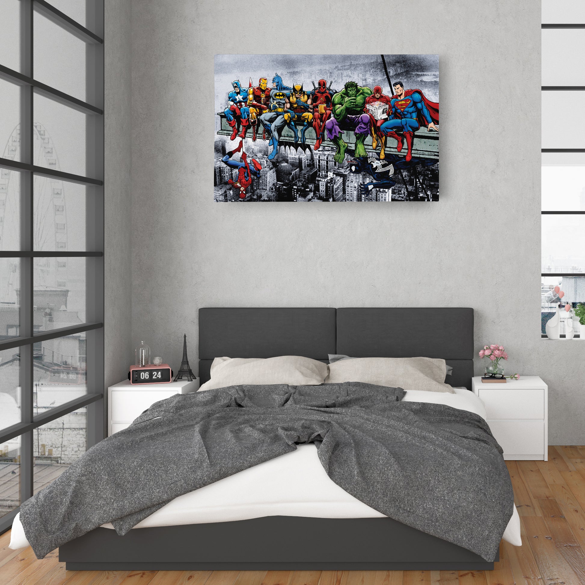 - Premium Canvas Wall Art: High-resolution superhero mashup with iconic NYC skyline