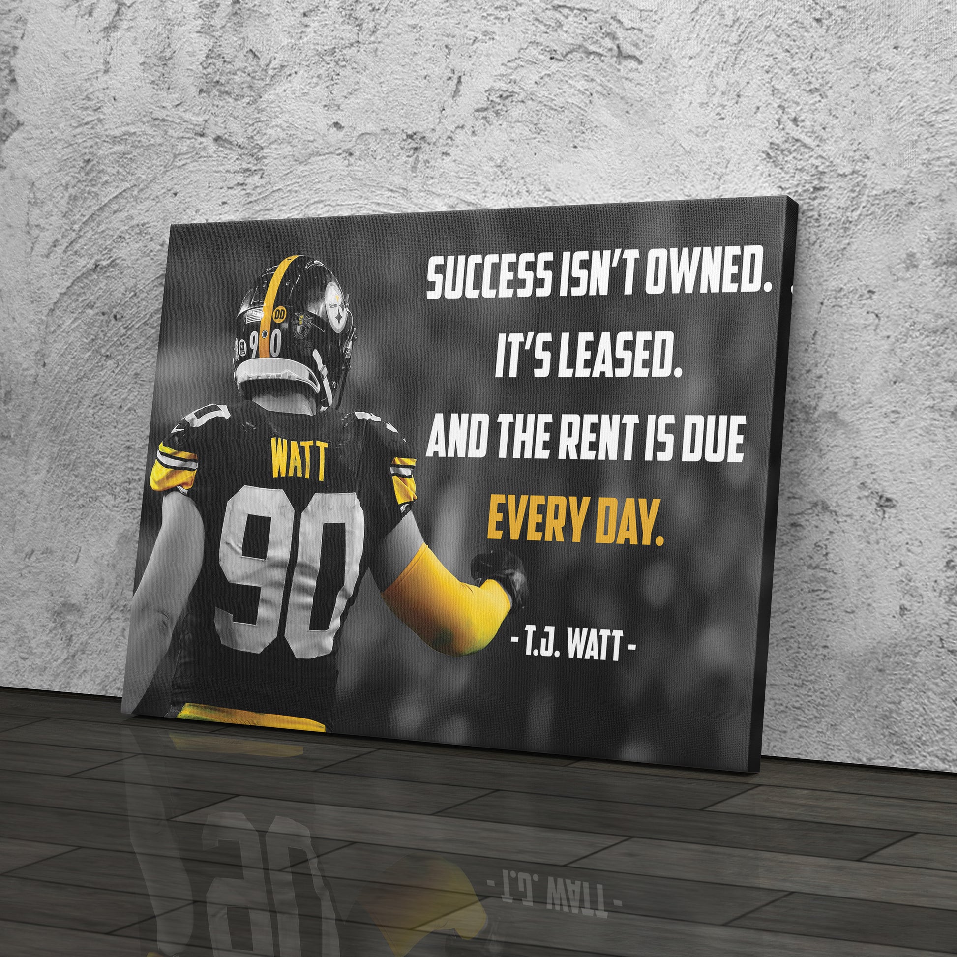 Bring the unstoppable mindset of T.J. Watt into your space with this Pittsburgh Steelers Quote Canvas Art. Shop now to own a piece of NFL greatness!